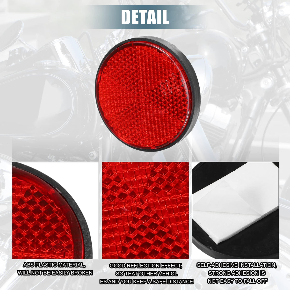 X Autohaux 8 Pcs Round Stick-On Safety Spoke Reflective Self Adhesive Reflector For Gate Posts Cars Trailer Motorcycle Trucks Boat Bicycle Bike Red