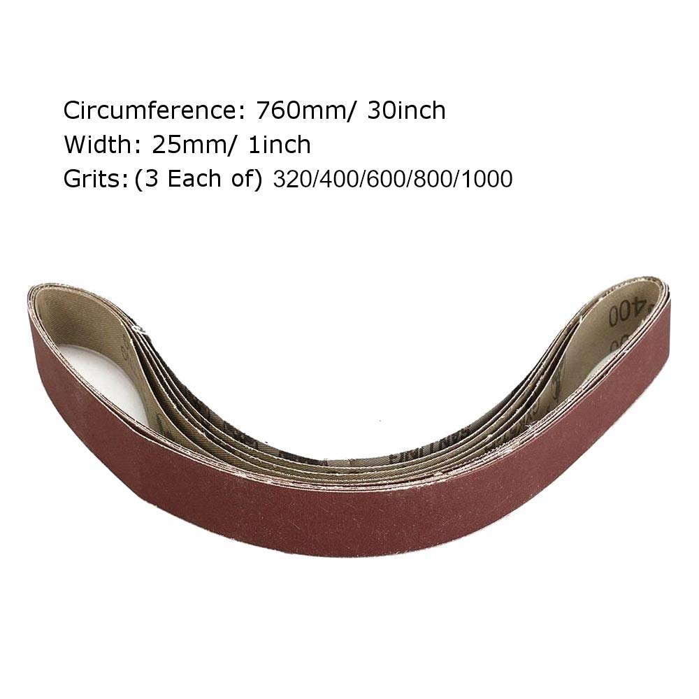 1 Inch X 30 Inch Sanding Belts, 3 Each Of 320/400/600/800/1000 Fine Grits, Belt Sander Tool For Woodworking, Metal Polishing, 15 Pack Aluminum Oxide Sanding Belt