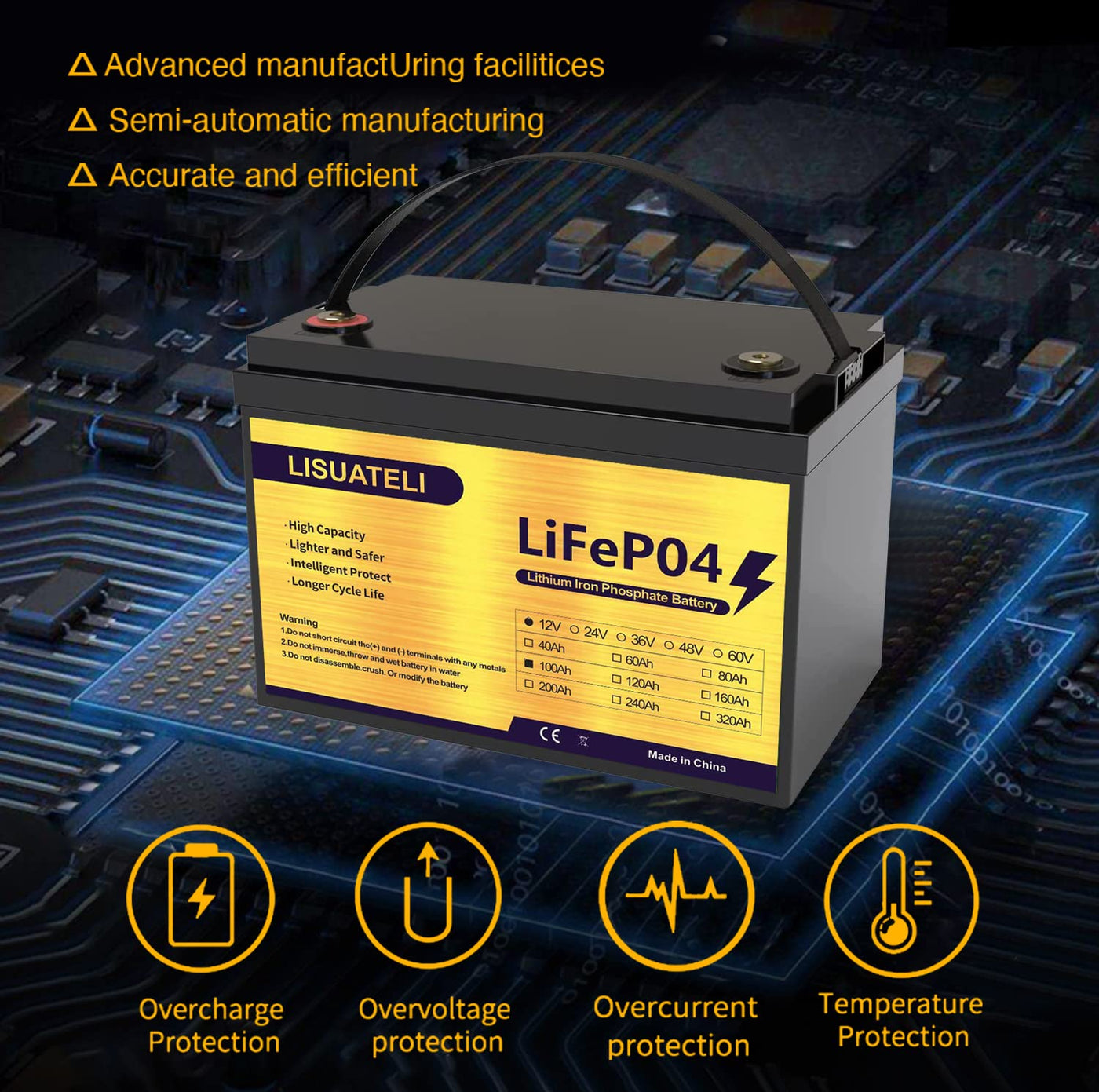 Q: What is the recommended charging method for this battery?A: The recommended charging voltage for the 12V 100Ah LiFePO4 battery is 14.6V, with a maximum charging current of less than 50A. It is essential to use a compatible charger to ensure safe and efficient charging.