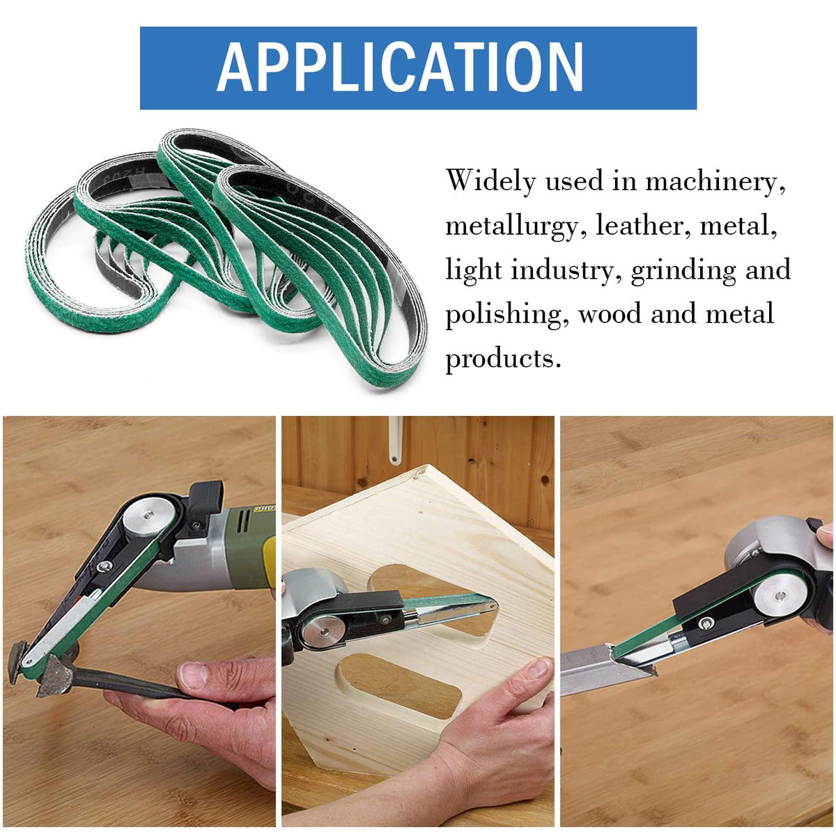 - The 3/8 Inch x 13 Inch Zirconia Sanding Belts is made of green zirconia particles, which is waterproof, high hardness, and heat-resistant. It is more sharp and wear-resistant than red aluminum oxide sanding belt and black silicon carbide sanding belt, and zirconia sanding belt can grind metals with higher hardness. - The superior hardness particle provide strong wear resistance and fast grinding force, enable it can work well on various of shapes surface, even the rugged one. - Wildly used in metal, wooding craft working, stone, rubber, leather, plastic, glass and other materials. - Suitable for most brands of 3/8' x 13' air belt sander such like Astro Tools 3036 air belt sander, Minimprover 3/8' x 13' air belt sander, B EAMNOVA 3/8 Inch Handheld Mini Air Belt Sander and NuoDunco 3/8' Pneumatic Sander Air Belt Sander etc.