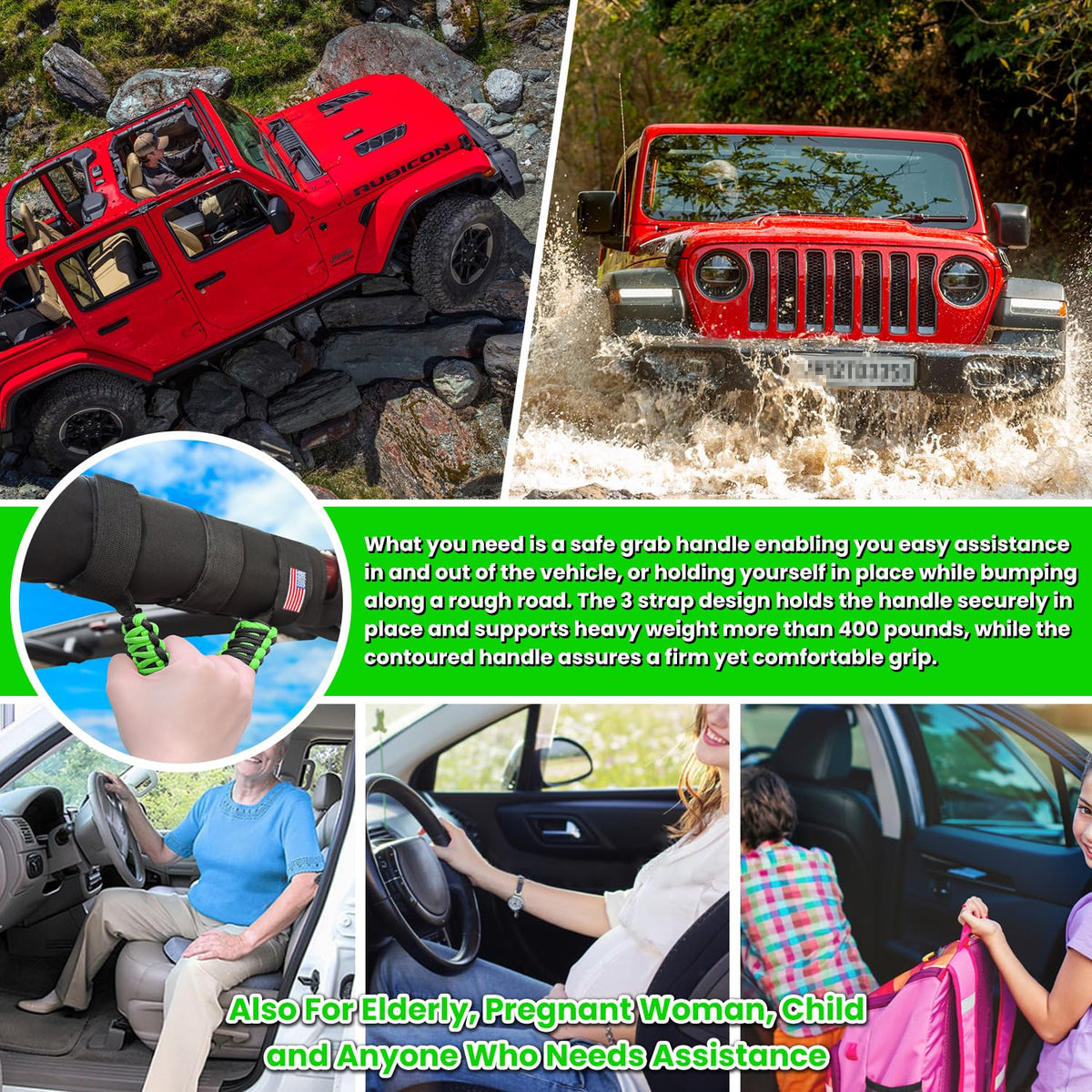 Great Compatibility - Perfectly fit for 1955-2023 Jeep Wrangler JK JKU JL JLU TJ LJ YJ CJ Sport Sahara Freedom Rubicon Unlimited & Gladiator JT 2-Door and 4-Door, ATV, UTV, etc. Adjustable to fit all 2-4 inches diameter round or square, padded or unpadded sports bar/roll bar.