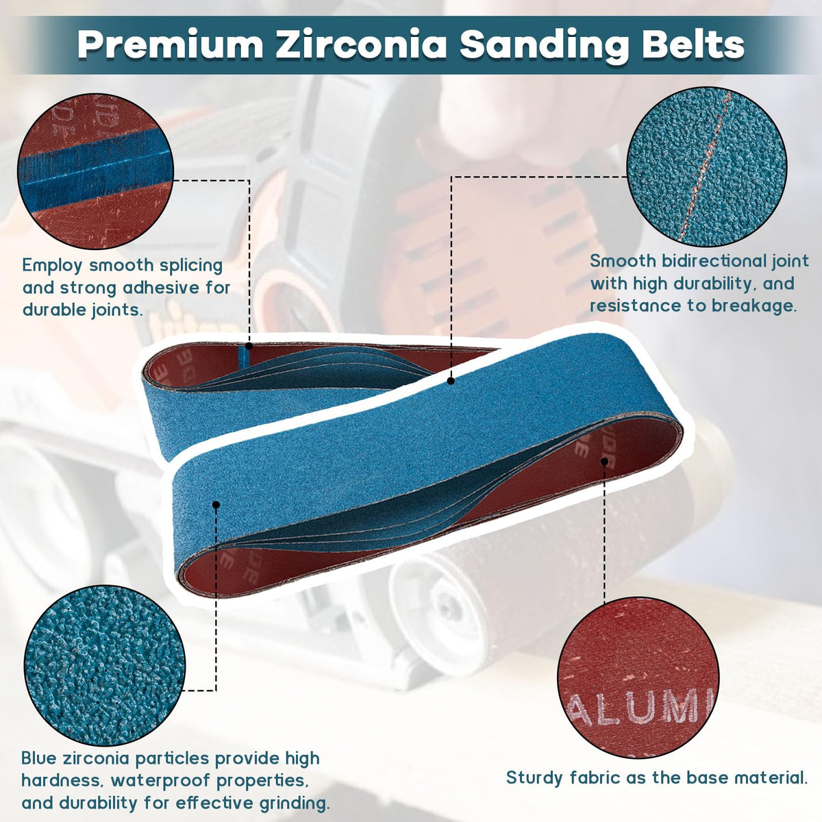 4X36 Inch Belt Sander Sanding Belts Kit 16 Pcs (4 Each Of 40/60/80/120 Grits), Zirconia Belt Sander Paper Sanding Belts For Wood, Metal, Cars, And Furniture, 16-Pack