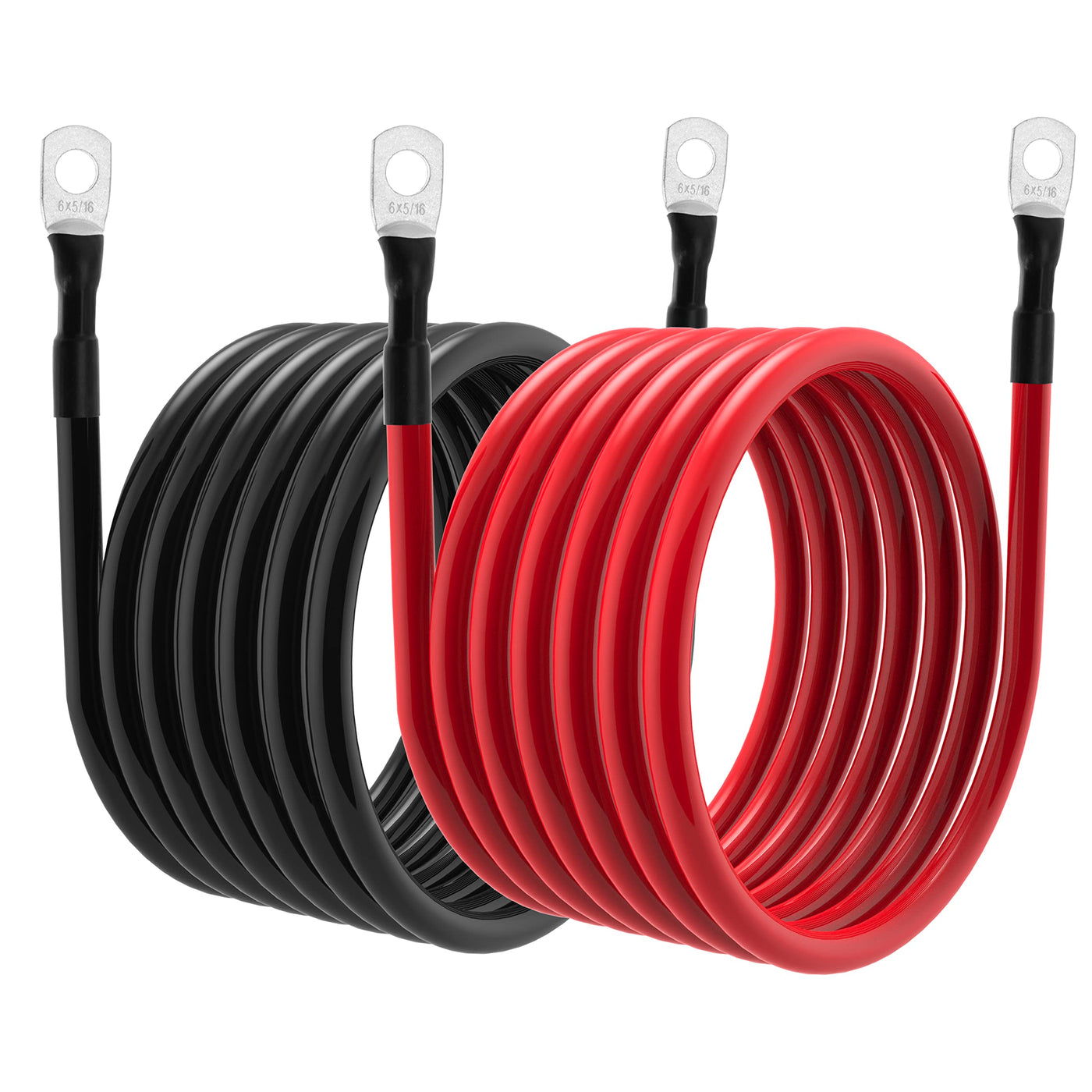Package included: 2pcs 6 AWG battery cables with 5/16 in lugs (both ends)