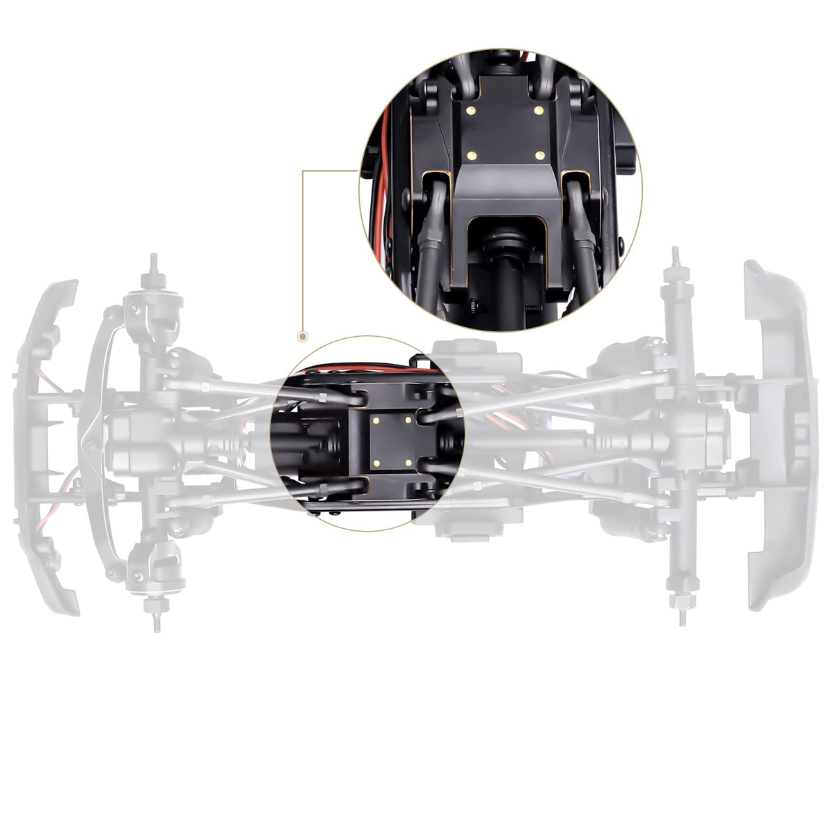 Q: How does the skid plate improve the durability of my crawler car?A: The brass skid plate protects the chassis and vital components from damage during extreme crawling and bashing sessions, ensuring long-lasting performance.