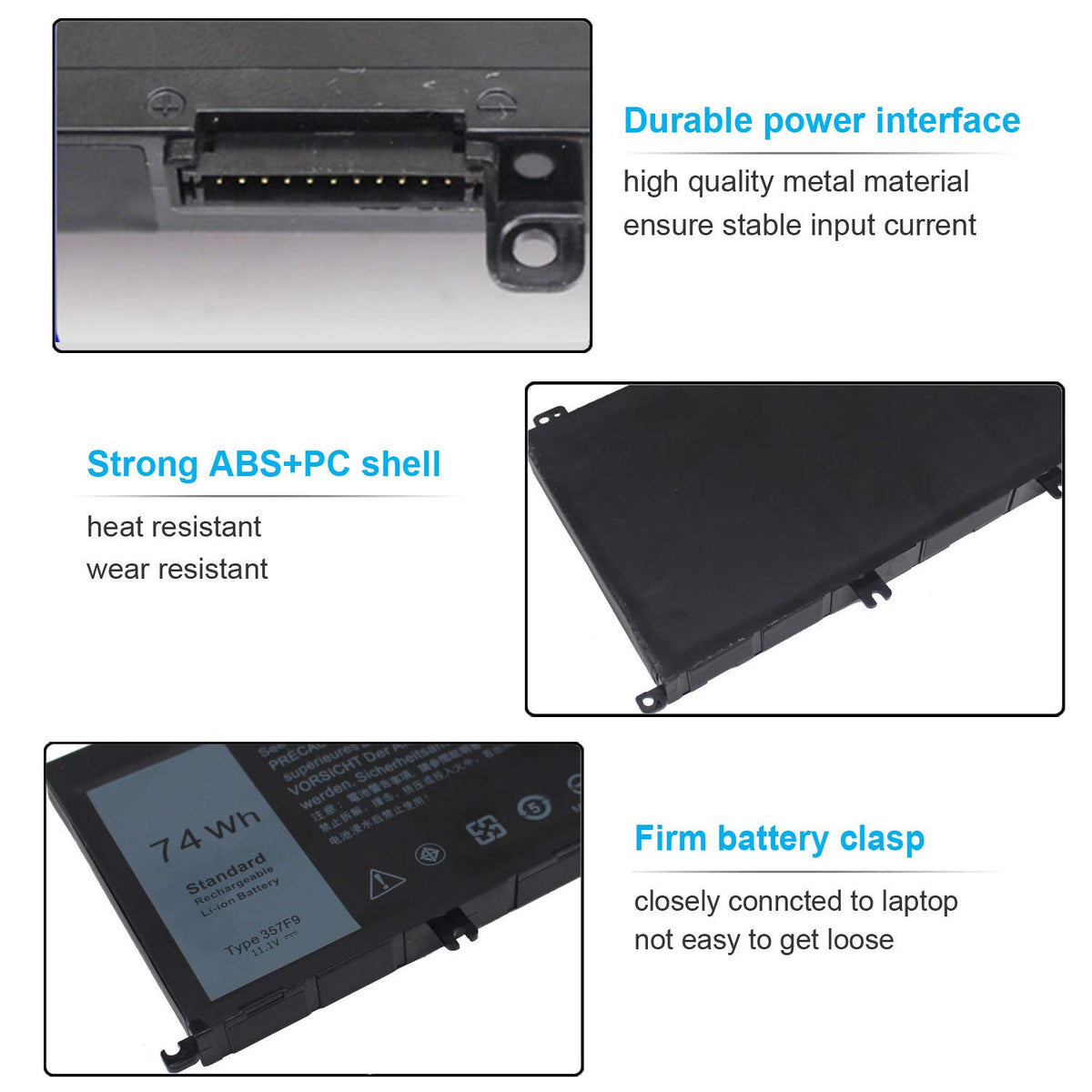 74Wh Type 357F9 71Jf4 Battery Compatible With Dell Inspiron 15 7000 7559 7557 7567 7566 7759 15 5576 5577 Ins15Pd Series 15-7559 0Gfj6 P57F 071Jf4 0357F9 6 Cell 11.1V 11.4V Li-Ion Laptop Battery New