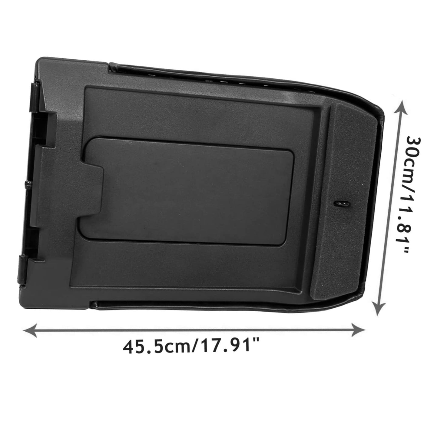 Q: What materials are used in the construction of this center console lid kit?A: The center console lid kit is constructed with black leather featuring an ebony finish, ensuring durability and longevity.