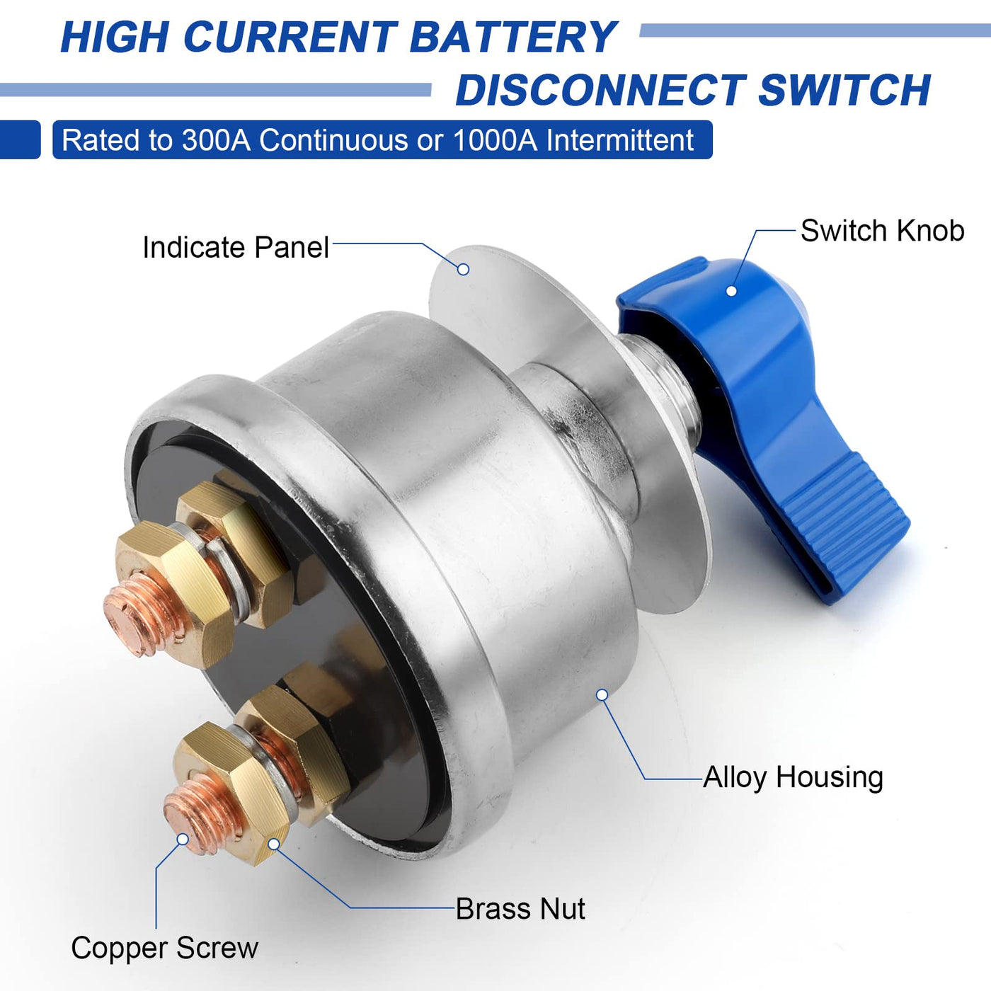 Ajulybee Battery Disconnect Switch Heavy Duty 300A With Face Plate, Battery Disconnect Switch 12V - 24V With Copper Contacts, Battery Switch For Car Vehicle Rv Truck Boat Marine Outboards