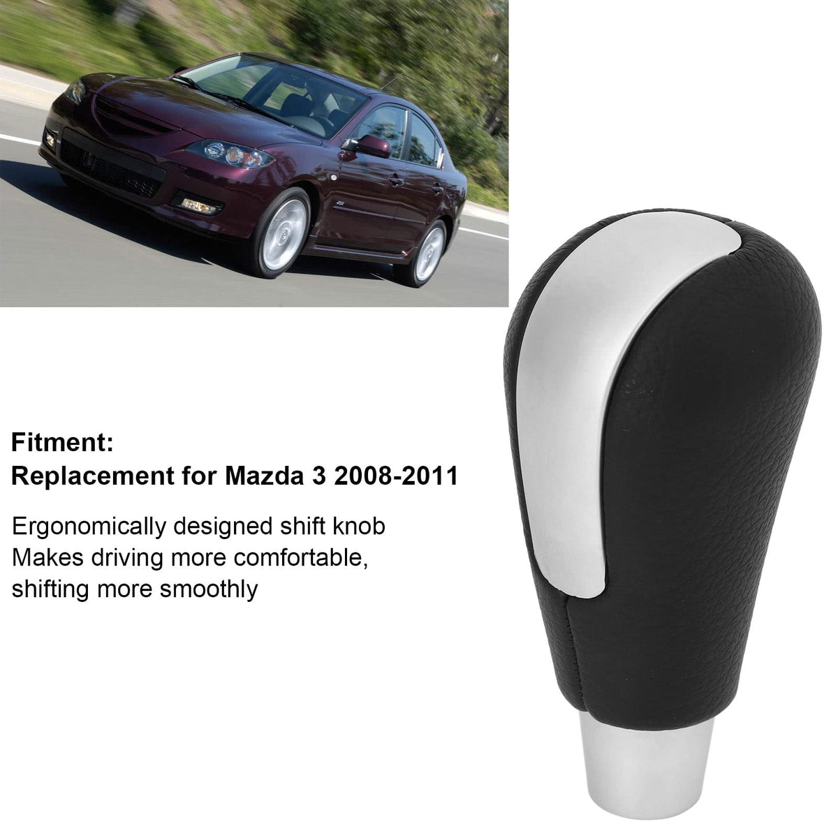 Specification: Item Type:&Nbsp;Gear&Nbsp;Shift&Nbsp;Knob Material: Pvc + Abs + Artificial Leather Function: This Cool Shift Knob Features A Unique Stylish Design And Is A Great Aftermarket Replacement For Your Old Or Used Model. Improves Driving Comfort And Interior Appearance Fitment: Replacement For Mazda 3 2008-2011