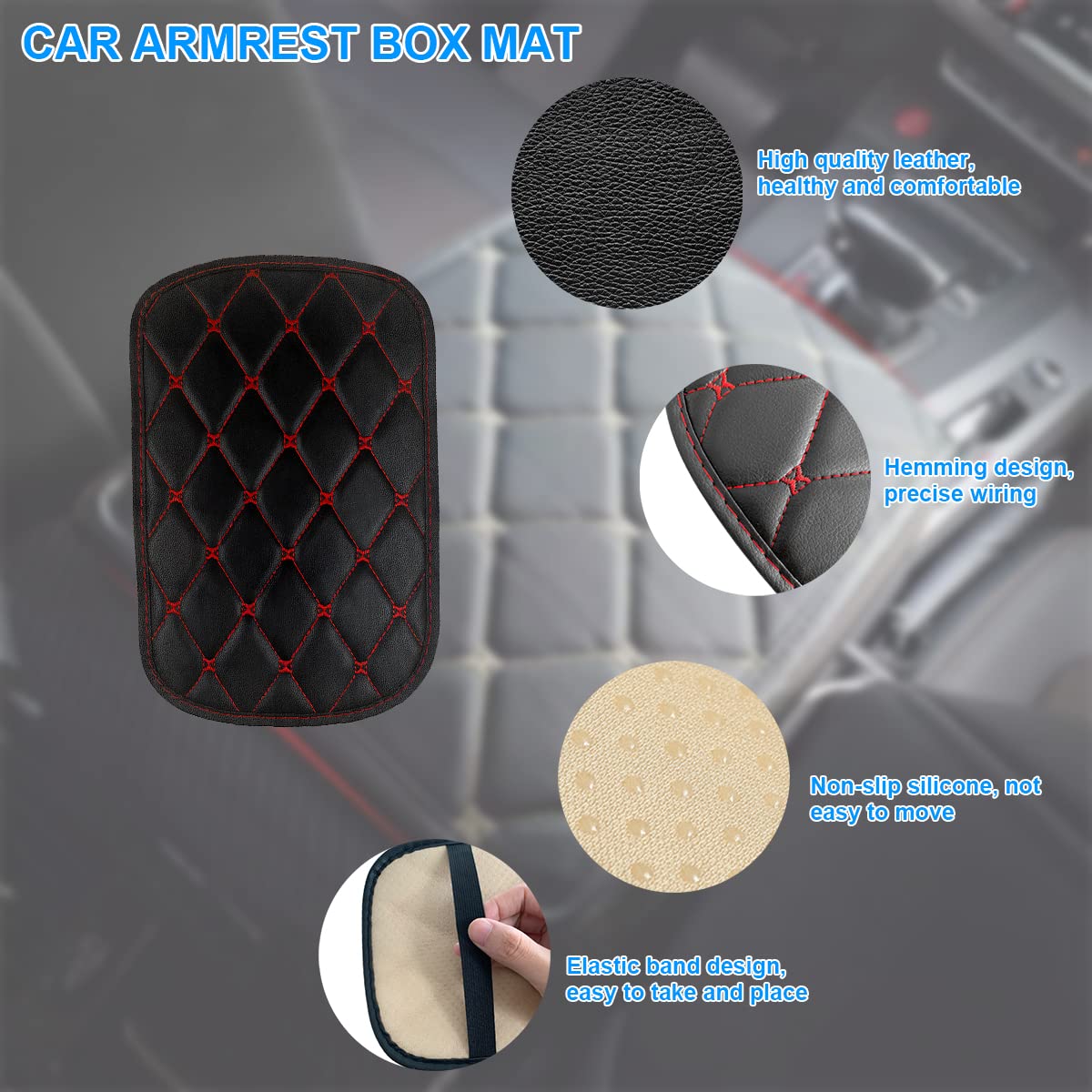 Auto Center Console Cushion Pad, Universal Waterproof Armrest Box Protection Pad/Cover Fit For Cars, Vehicles, Suvs, Comfort, Car Interior Accessories For Men Women (Black/Red)
