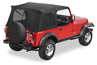 A desirable upgrade to factory soft tops with premium, dual-layer ''Stretch-and-Set'' fabric that retains its shape in varying temperature conditions. Adjustable bows allow varying tension on the top to keep it looking smooth and fresh. Galvanized powder-coated hardware for durability. All DOT approved vinyl windows are removable and replaceable. Supertop Classic includes everything needed for a completely new soft top installation; nothing else to buy. Bestop's original Belt-Rail attachment system eliminates snaps or any drilling thru exterior sheet metal. Choice of kits with 2-pc. full fabric doors, Upper Fabric Half Doors or kits without doors, depending upon model year.