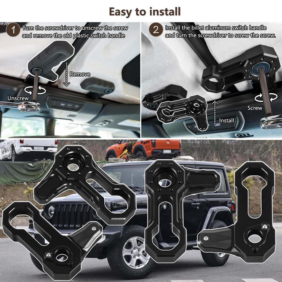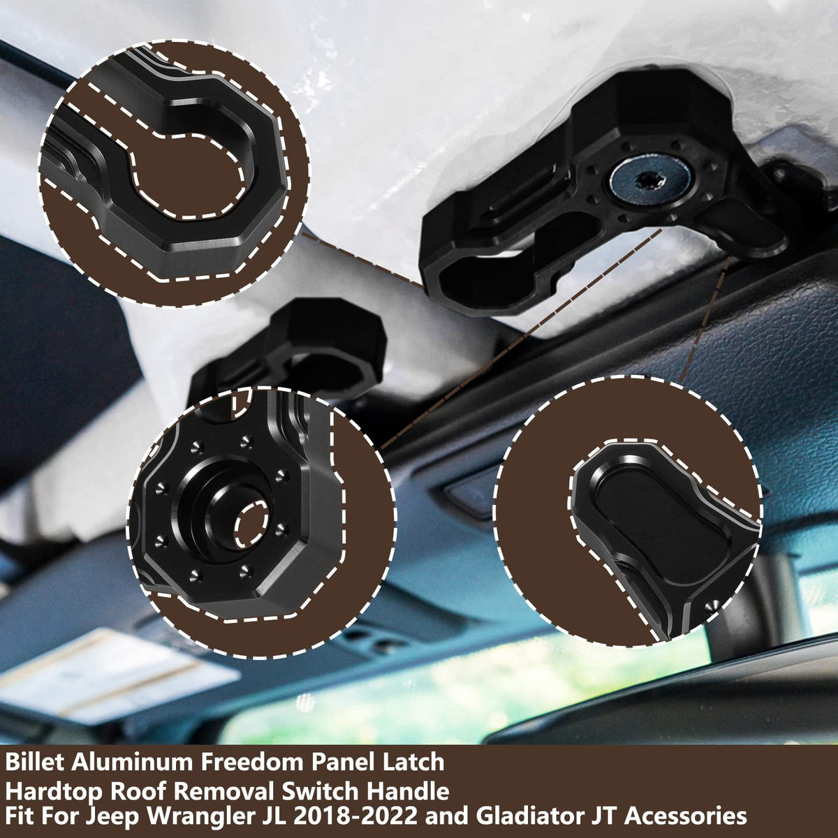 Billet Aluminum Freedom Panel Latch Hardtop Roof Removal Switch Handle Compatible with Jeep Wrangler JL 2018-2025 and Gladiator