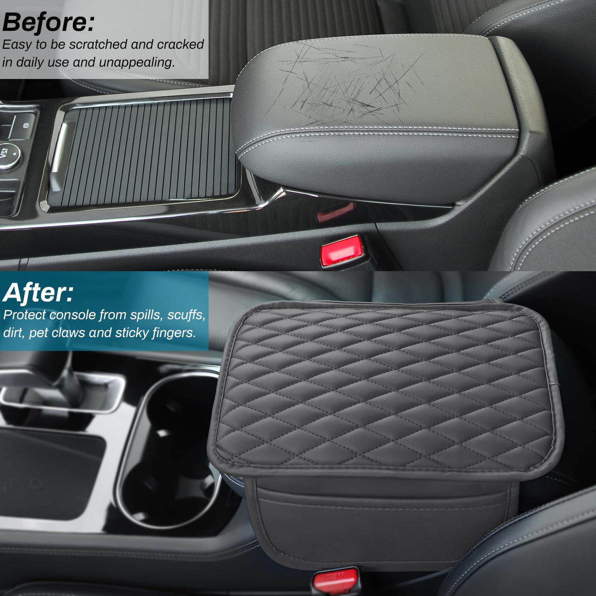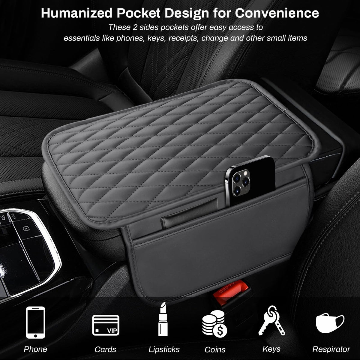 Car Center Console Cover, Upgraded Microfiber Leather Car Arm Rest Cover With 2 Storage Bags, Universal Armrest Cover For Car St