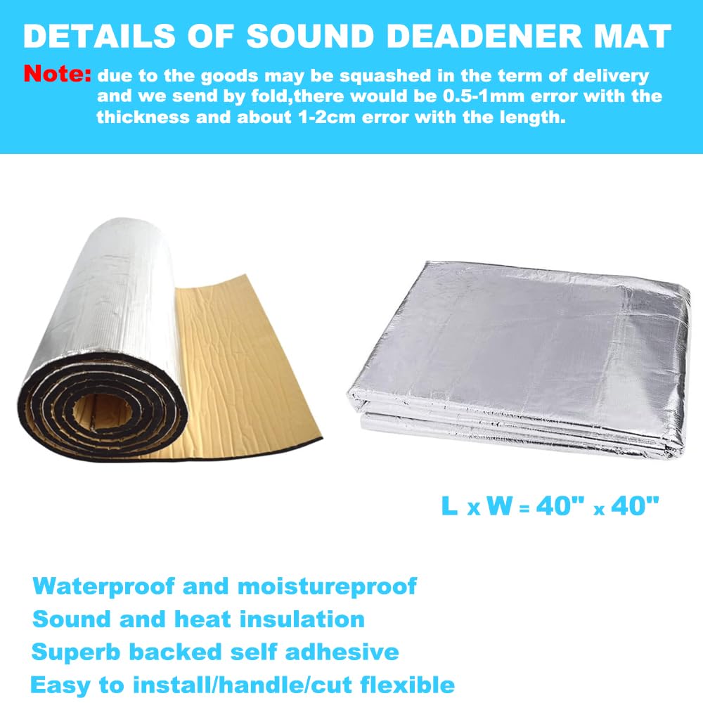 Car Heat Sound Deadening Insulation Mat - 394mil 10.8 sqft PE Foam Sound Deadener Material & Heat Barrier for Auto Hood Engine R