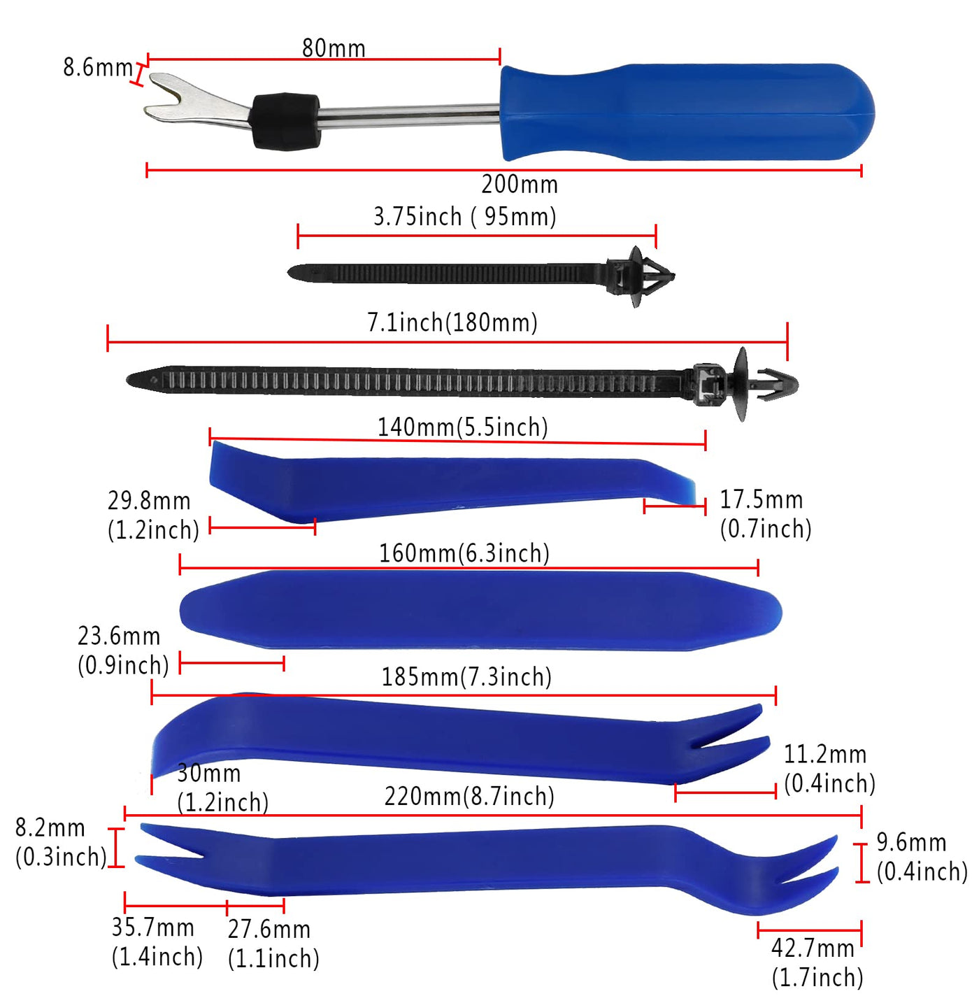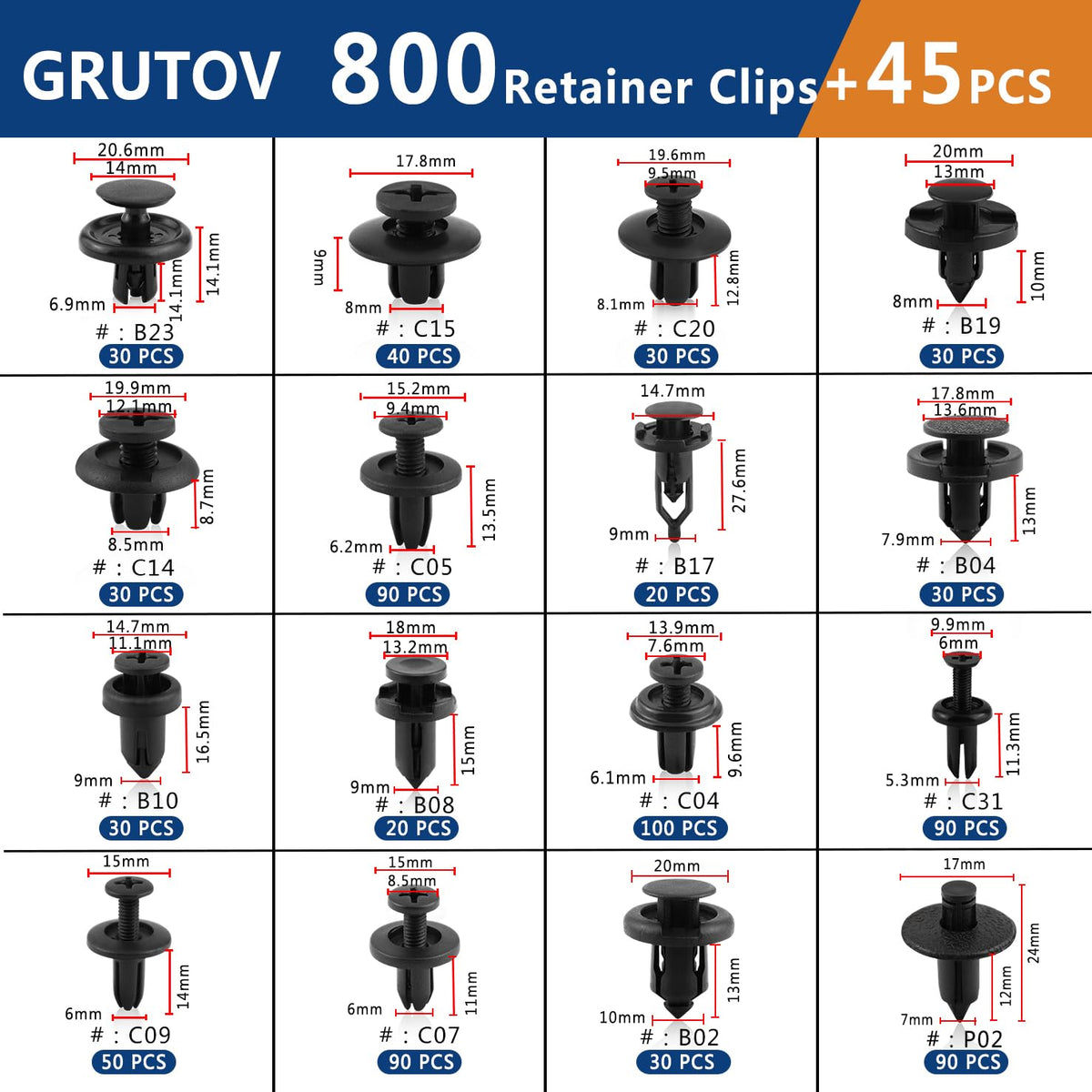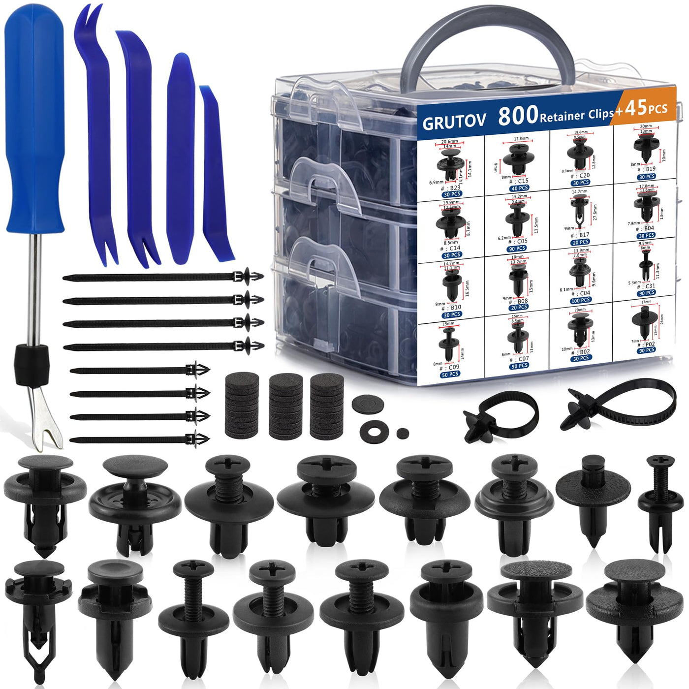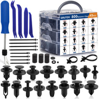 Grutov 845Pcs Car Push Retainer Clips Kit Automotive Screws Auto Body Fastener Push Pins Set Panel Bumper Clips with 10 Cable Ties Fastener Remover for GM Ford Toyota Honda Chrysler Acura Blue