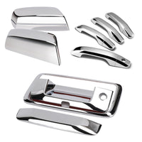 This chrome door handle cover & top half mirror cover & tailgate cover are your perfectly replacement for your old one, giving your vehicle a cool looking and offering long-lasting usage.Specification: COLOR: CHROME BRAND: Tutor Auto CONDITION: NEW PACKAGE INCLUDED: 2 * Top Half Mirror Covers 8 * Door Handle Covers 1 * Tailgate CoversFeatures: NOT for towing mirror durable and last long Easy installation: Clean the installation point, tear off the adhesive tape, put it on your car, and press it for a few minutes. Remember keep the installation point clean enough before replacement!Compatibility: v 2014-2018 GMC Sierra 1500 v 2015-2018 GMC Sierra 2500 v 2015-2018 GMC Sierra 3500 v 2014-2018 Silverado 1500 v 2015-2018 Silverado 2500 v 2015-2018 Silverado 3500Great Customer Service: ONE YEAR WARRANTY Any questions before or after buying this set, please feel free to contact us by e-mail , it's our pleasure to solve things out for you.