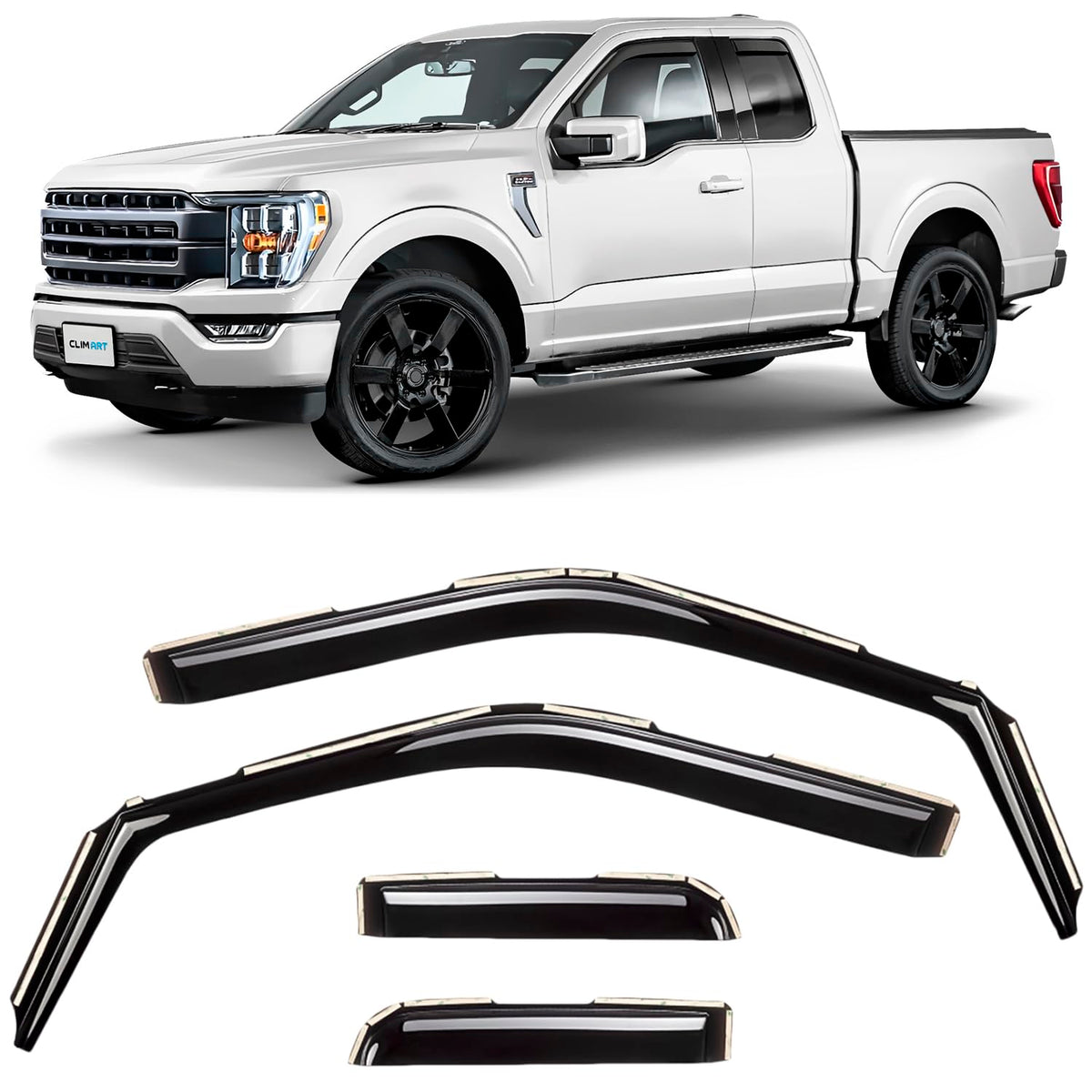 Clim Art In-Channel Incredibly Durable Rain Guards Compatible With Ford F150 2021-2025 Supercab, Original Window Deflectors, Ven