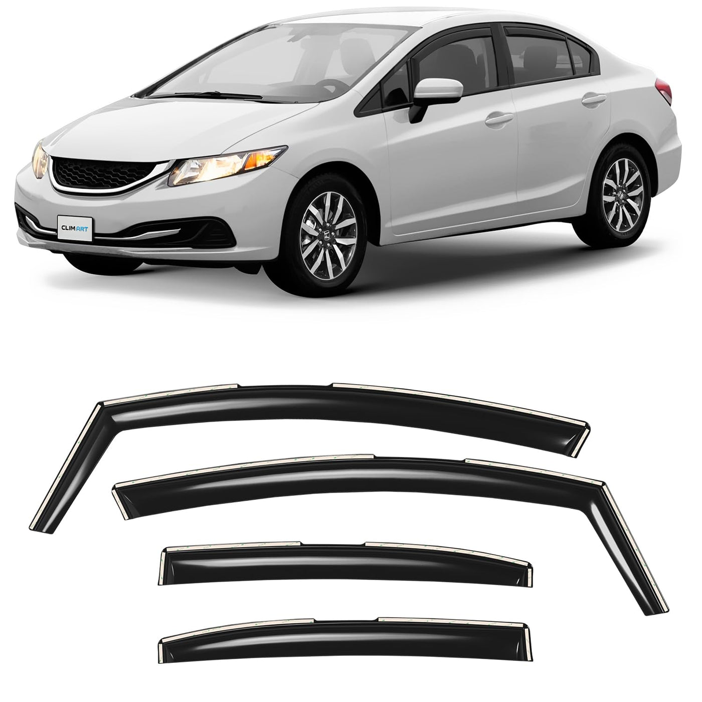 Clim Art In-Channel Incredibly Durable Rain Guards For Honda Civic 2012-2015 Sedan, Original Window Deflectors, Vent Window Viso