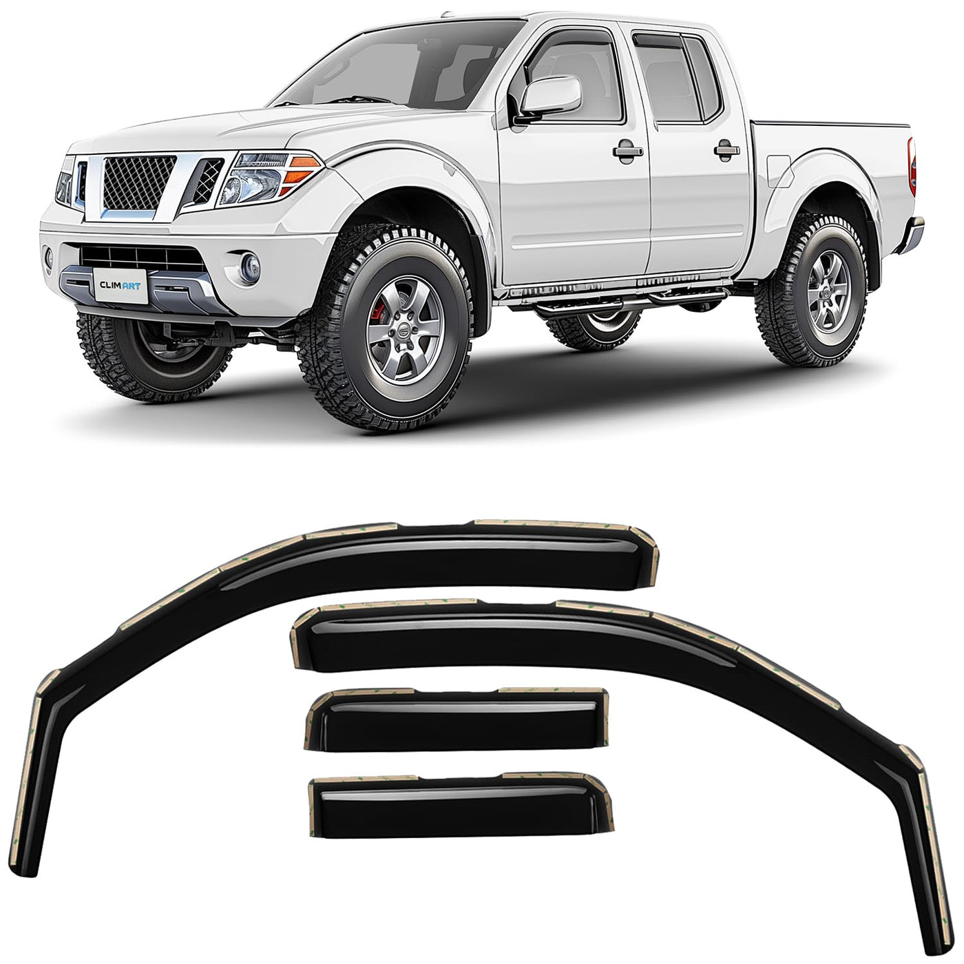 Clim Art In-Channel Incredibly Durable Rain Guards For Nissan Frontier 2005-2021 Crew Cab, Original Window Deflectors, Vent Wind