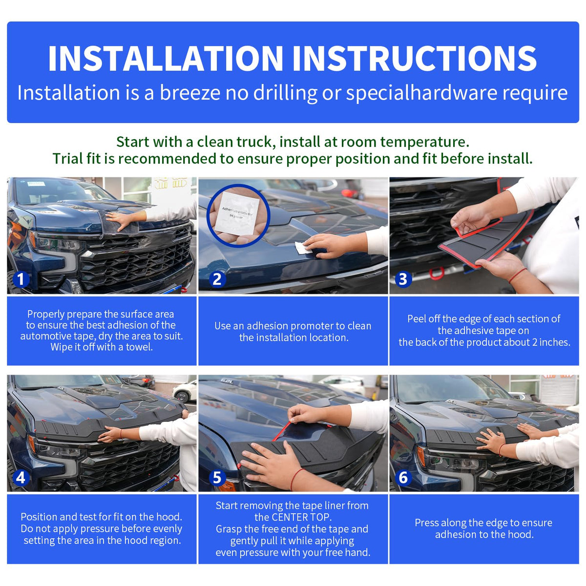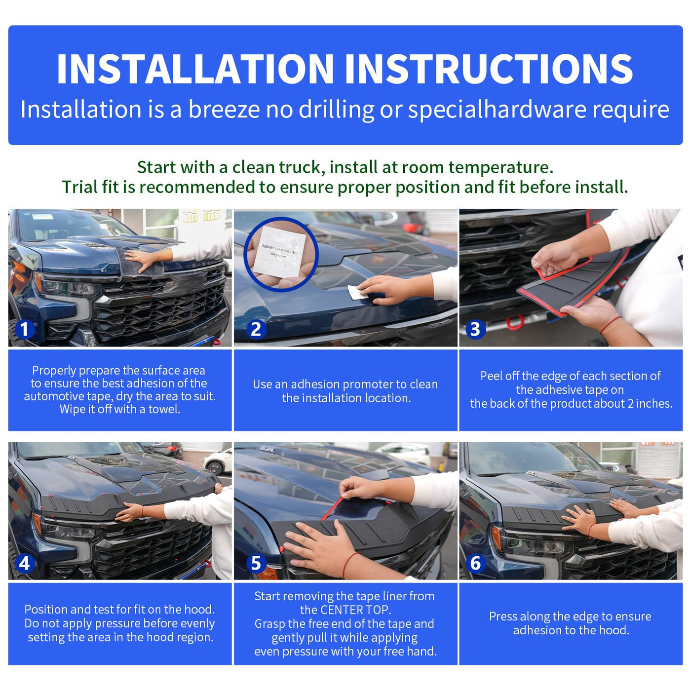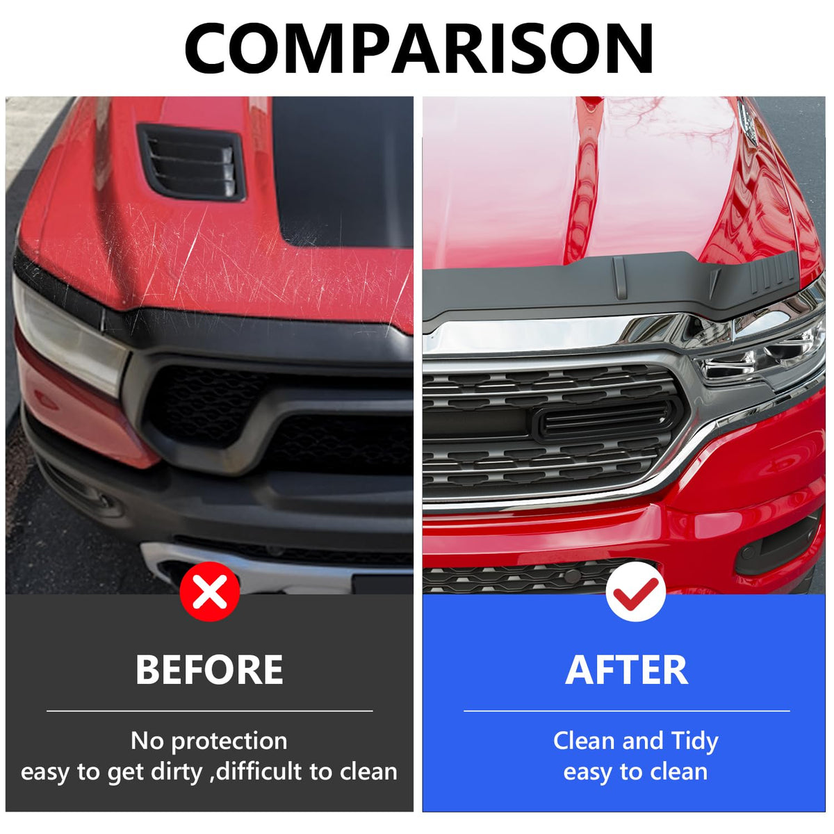 Exclusive Fitment: Our shield compatible with 2019 2020 2021 2022 2023 2024 2025 Dodge RAM 1500 hood deflector is designed according to the original model. It fits just right without messing up the car's look or its original design. NOTE: it is NOT compatible with Rebel, RHO and TRX Models!!! Please check your vehicle model carefully before placing an order. Premium Material: Our hood deflector compatible with 2019-2025 Dodge RAM 1500 hood deflector is made of high-strength TPE material, which is soft, flexible, wear-resistant and can be used for a long time. This material can withstand harsh weather conditions, including strong winds, sandstorms, and even small hail. It is also UV resistant, preventing it from fading or becoming brittle over time. It also maintains the value of your car. It is easy to clean, just rinse it off with water. Function: The hood protector replacement for RAM 1500 hood deflector does a good job of blocking small stones from the sand splashed by the wheels in front. It helps to prevent damage to the hood and windshield of your car. Additionally, it can reduce wind noise and turbulence, providing a quieter and more comfortable driving experience. Simple Installation: It is not difficult to install the hood shield compatible with 2019-2025 RAM 1500 hood protector. It needs no professional tools. The whole process is easy. Please wipe the installation area clean before installation. The back of the product comes with double-sided tape, so it can be easily fixed. You could refer to the installation instructions on the product homepage or the installation steps in the manual for installation. Satisfactory Service: We provide you satisfactory service. If you have any problems about the deflector replacement for 2019 2020 2021 2022 2023 2024 2025 Dodge RAM 1500 hood shield, please contact us. We will provide you with after-sales service.