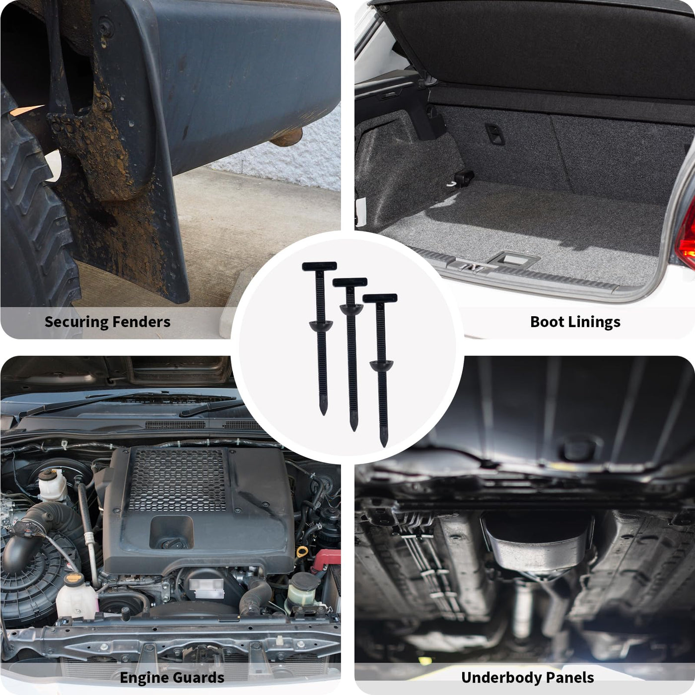 Dannir 50PCS-100PCS Nylon Universal Cable Tie Buckle, New Cable Ties Tool Fasteners Car Body, Heavy Duty Self-Locking Nylon Zip Ties Holder for Car Daily Repair, Auto Repairing Quick Fix Nylon Universal Cable Tie Buckle: These cable tie buckles are perfect for securing fenders, boot linings, engine guards, and underbody panels. They can be used to replace screws and clips in over 90% of car models. A useful way to maintain your car. Quick One-Button Installation: These universal cable tie clips have a self-locking mechanism, so you can easily install them without using tools. Just push and lock, no extra steps are needed. This saves time and effort when doing emergency repairs or DIY. Durable Material: Made from strong, durable nylon that can resist UV damage, these zip tie buckles can handle rain, heat, and regular use. It is perfect for long-term use outside or in vehicles. Compact and Portable: They are small enough to fit in your glove box or toolbox. These zip-tie buckles are a reliable backup in case of unexpected vehicle issues. It's a great thing to have in your emergency kit for when you're out driving. DIY-Friendly Cable Tie Buckle: If you like to do your car repairs, these fasteners make it easier and faster to maintain your car. It's now easier than ever to replace lost screws or fix loose parts.