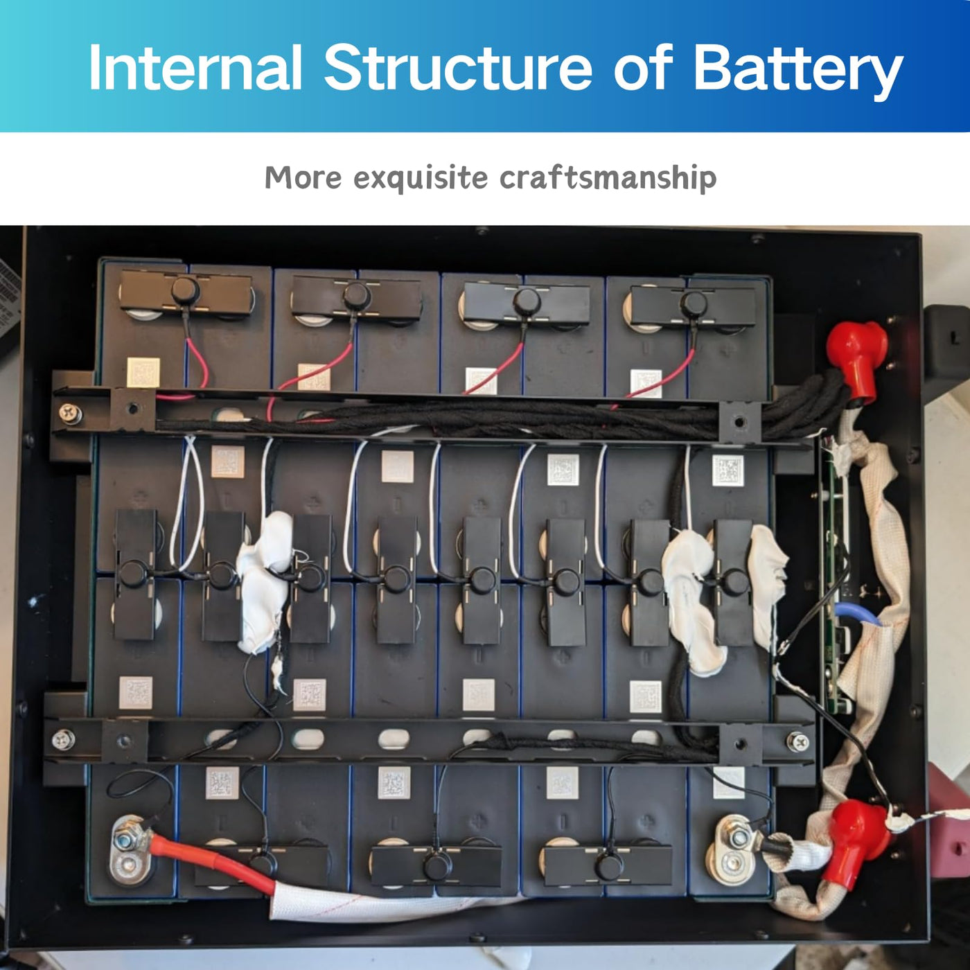 Q: How does the built-in 100A BMS protect the battery?A: The built-in 100A Battery Management System (BMS) offers robust protection against high temperatures, low temperatures, short circuits, overcurrent, and overload, ensuring the safety and longevity of the battery.