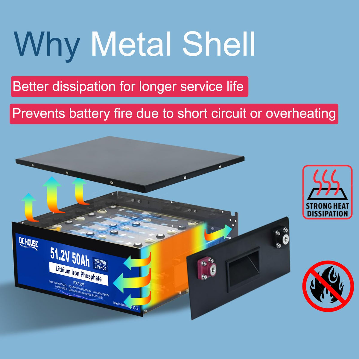 Dc House 48V 50Ah Lifepo4 Golf Cart Battery, Built-In 100A Bms-2C,Suitable For Both Club Car, Yamaha Golf Carts, Lithium Battery Perfectly For Ryobi Mowers, Trolling Motor, Off-Grid Solar System