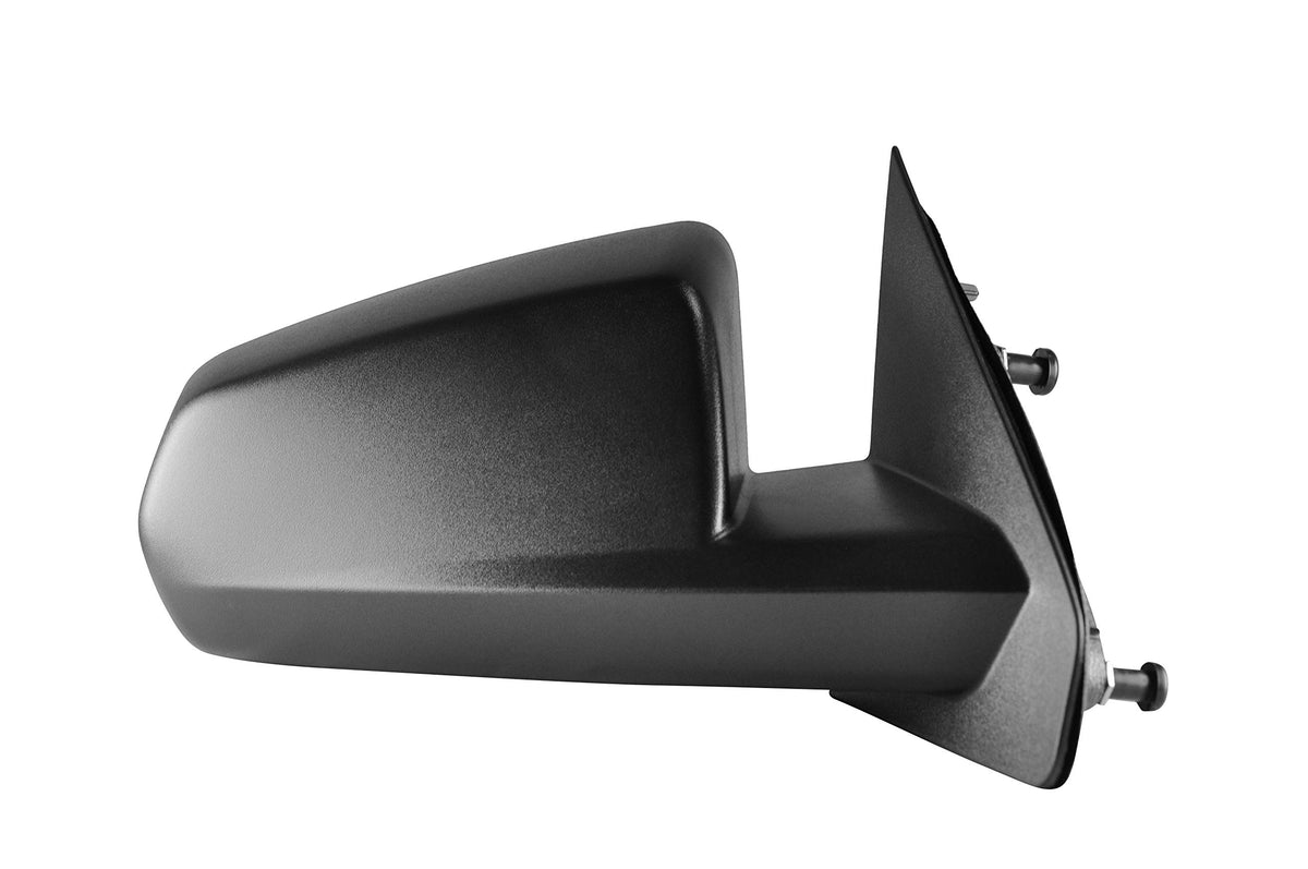 Q: What are the main features of this power-operated side view mirror?A: This power-operated side view mirror features a textured black finish, convex glass for wider visibility, and is non-folding. It is designed for easy plug-and-play installation with the same electrical connectors as the original mirror.