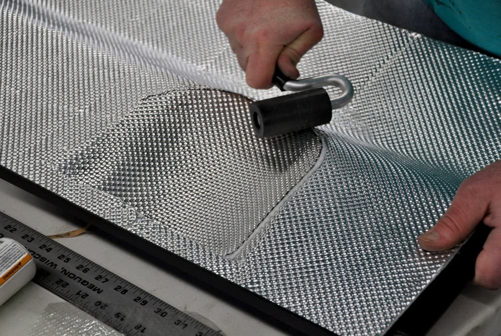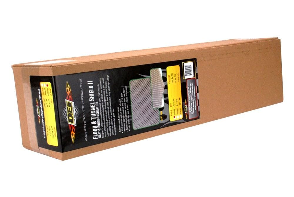 The Design Engineering Floor & Tunnel Shield II solves the problem of needing a high heat barrier to block heat from any source intruding into interiors and damaging components and electronics. Use as a barrier to reflect and insulate from any heat source. Designed to provide the best possible heat protection in areas where high temperatures are always present and problematic, Floor & Tunnel Shield II limits heat transfer on fire walls, transmission tunnels, floor boards, fuel cells and other areas where heat is an issue. Floor & Tunnel Shield II provides excellent lightweight thermal protection, acts as a guard against track and road debris, and provides sound deadening as well. Constructed with an embossed 10 mil aluminum face bonded to 1/8'' composite glass-fiber core, Floor & Tunnel Shield II withstands up to 1750F of direct continuous heat. Its multifaceted modern aluminum surface offers improved reflection and rigidity and allows for ease of installation - aluminum side must face the heat source. At only 3/16'' thick, this product can be shaped and trimmed for a custom fit and is ideal for minimal clearance areas. With a unique and patented finely woven glass-fiber backing, Floor & Tunnel Shield II is the easiest, most cost effective way to control thermal transfer while protecting expensive components and vehicle occupants from extreme heat situations and sound. Floor & Tunnel Shield II can be used on any number of surfaces including, metal, aluminum, carbon fiber, plastic, and more. Multiple uses include: fire walls, under hoods, transmission tunnels, floor pans, fuel cells, and exterior under vehicle locations - anywhere to reflect damaging heat. This version of Floor and Tunnel II does not include adhesive backing.