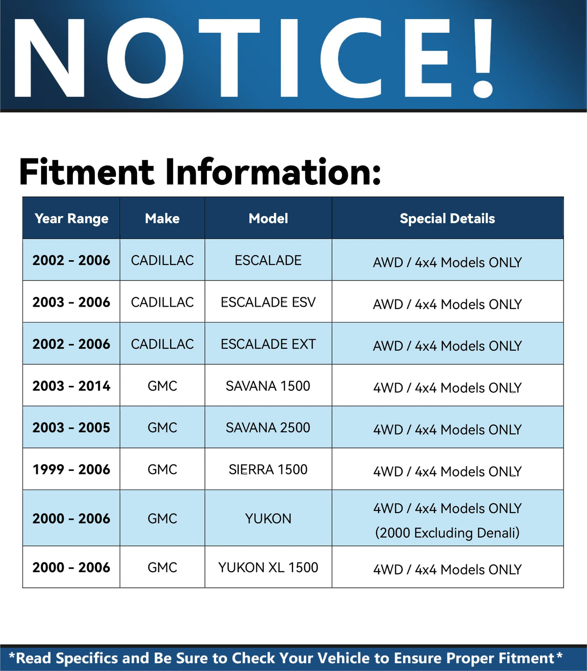 Detroit Axle - 4Wd Front Wheel Bearing Hub For Chevy Gmc Silverado Sierra Yukon Xl Avalanche Suburban 1500 Tahoe Cadillac Escala