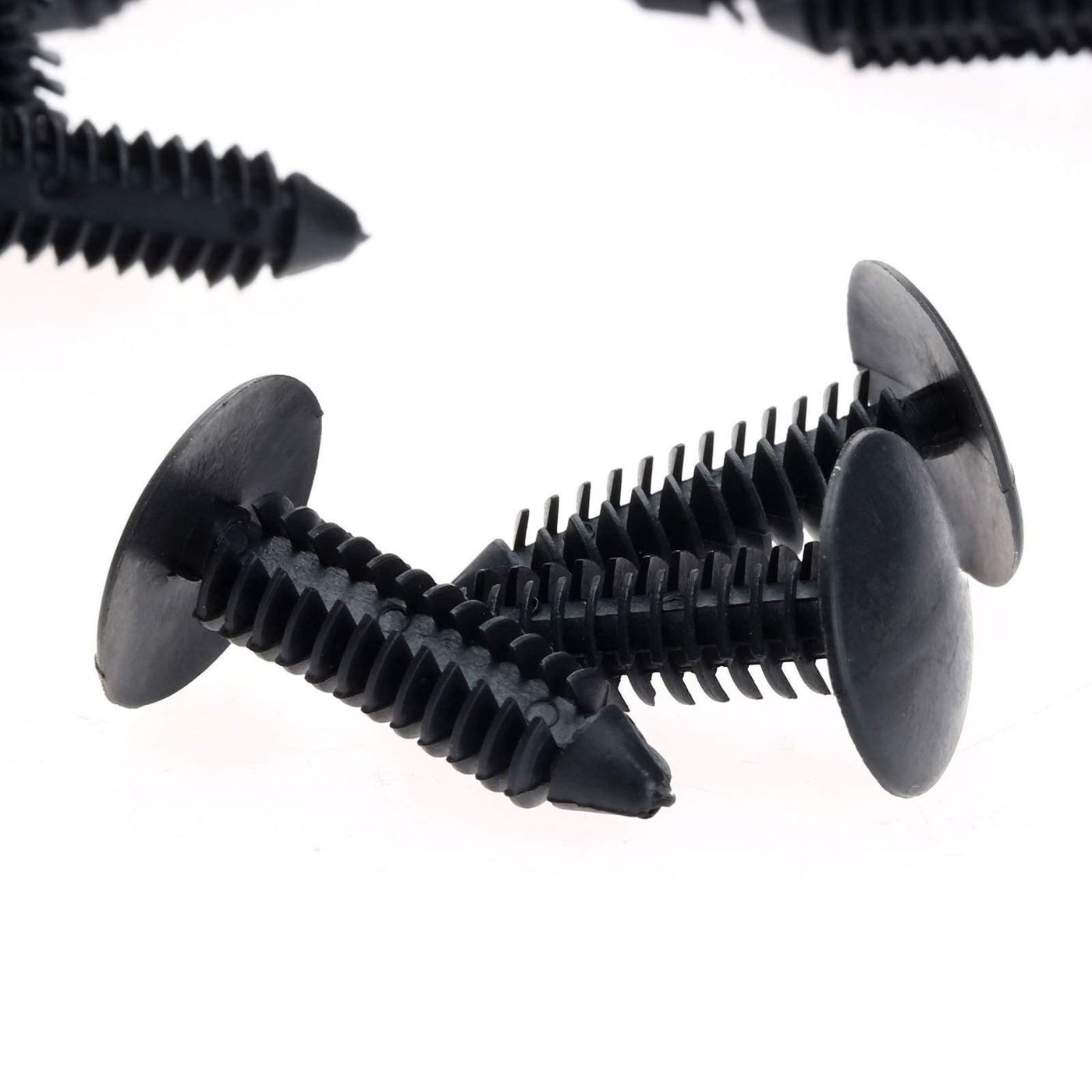 Q: How do I install these push fasteners?A: Installation is simple and convenient. These are push-in type fastener clips, which means all you need to do is push them into place to fasten bumpers, fender flares, or mud flaps.