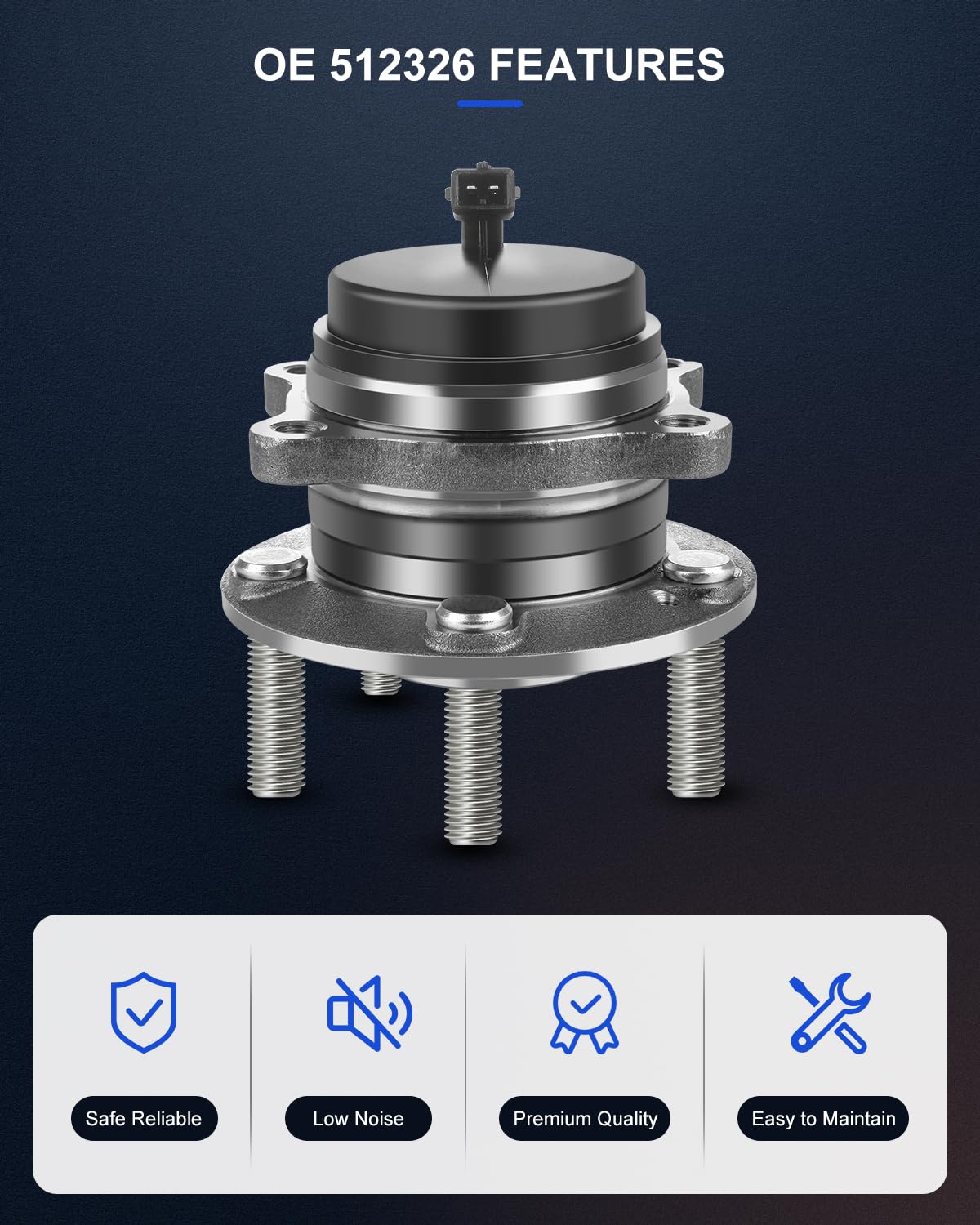 ECCPP Replacement for Wheel Bearing Hub 512326 Hub Bearing Assembly Hub Assemblies Rear Axle 5 Lugs W/ABS Sensor for Hyundai San