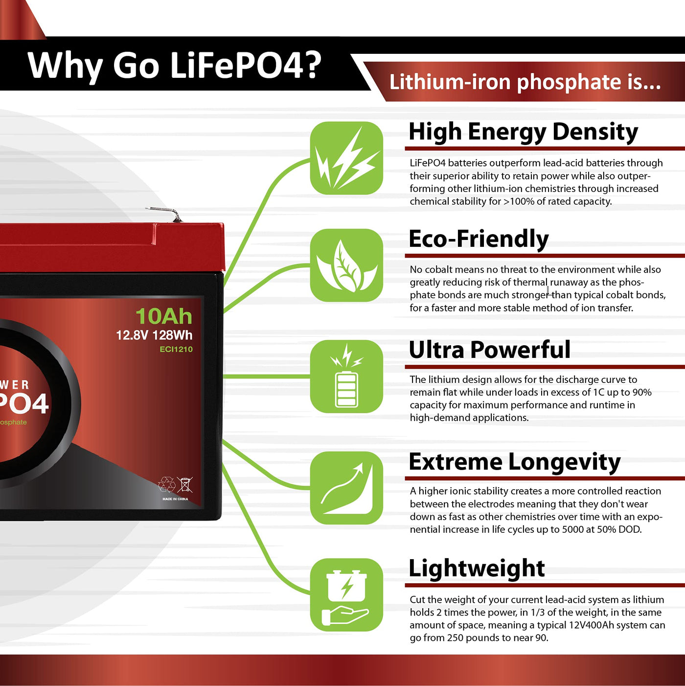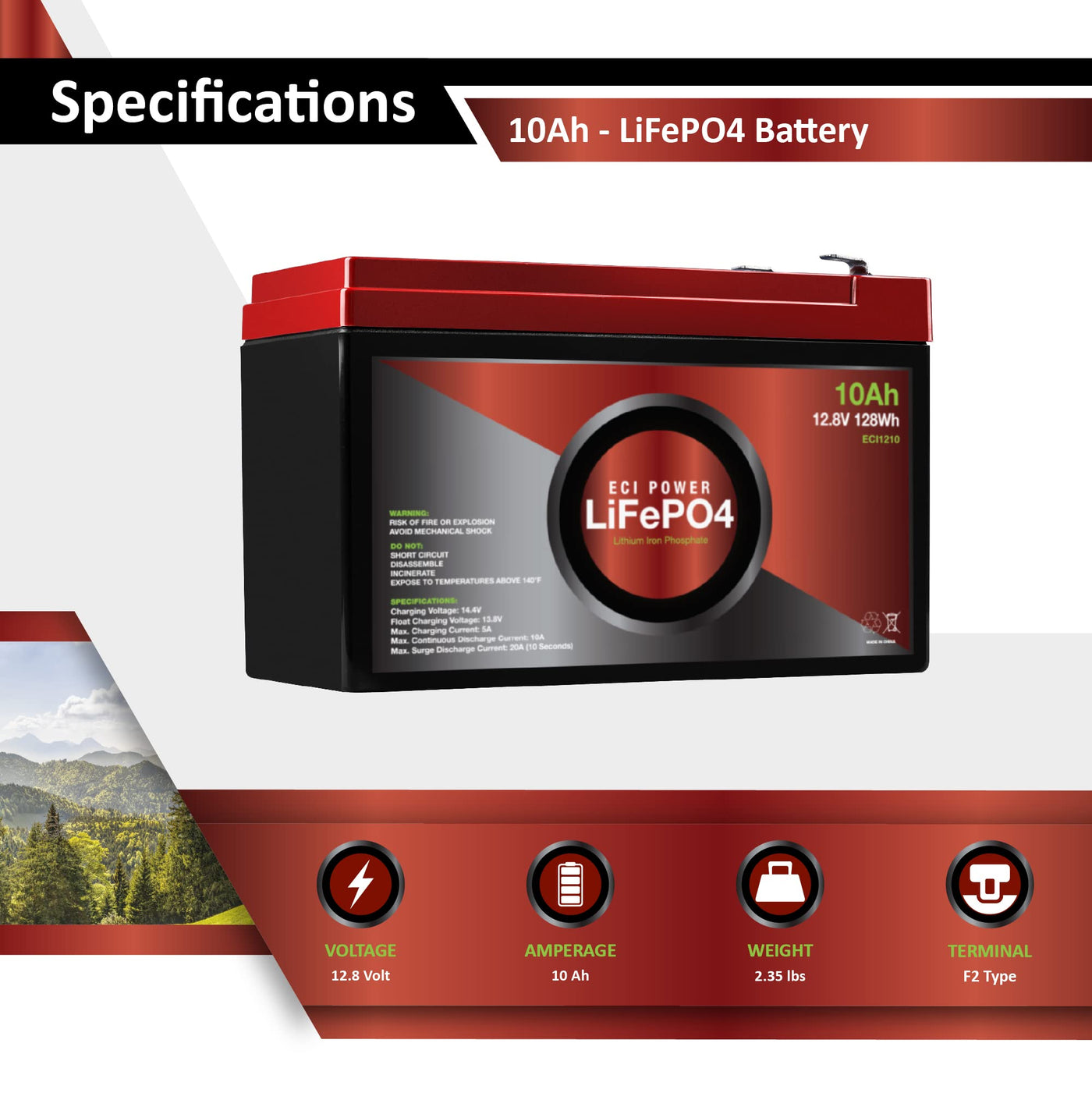 Eci Power 12V 10Ah Lithium Lifepo4 Deep Cycle Rechargeable Battery | 2000-5000 Life Cycles & 10-Year Lifetime | Built-In Bms | Perfect For Rv, Solar, Marine, Overland, Off-Grid Applications