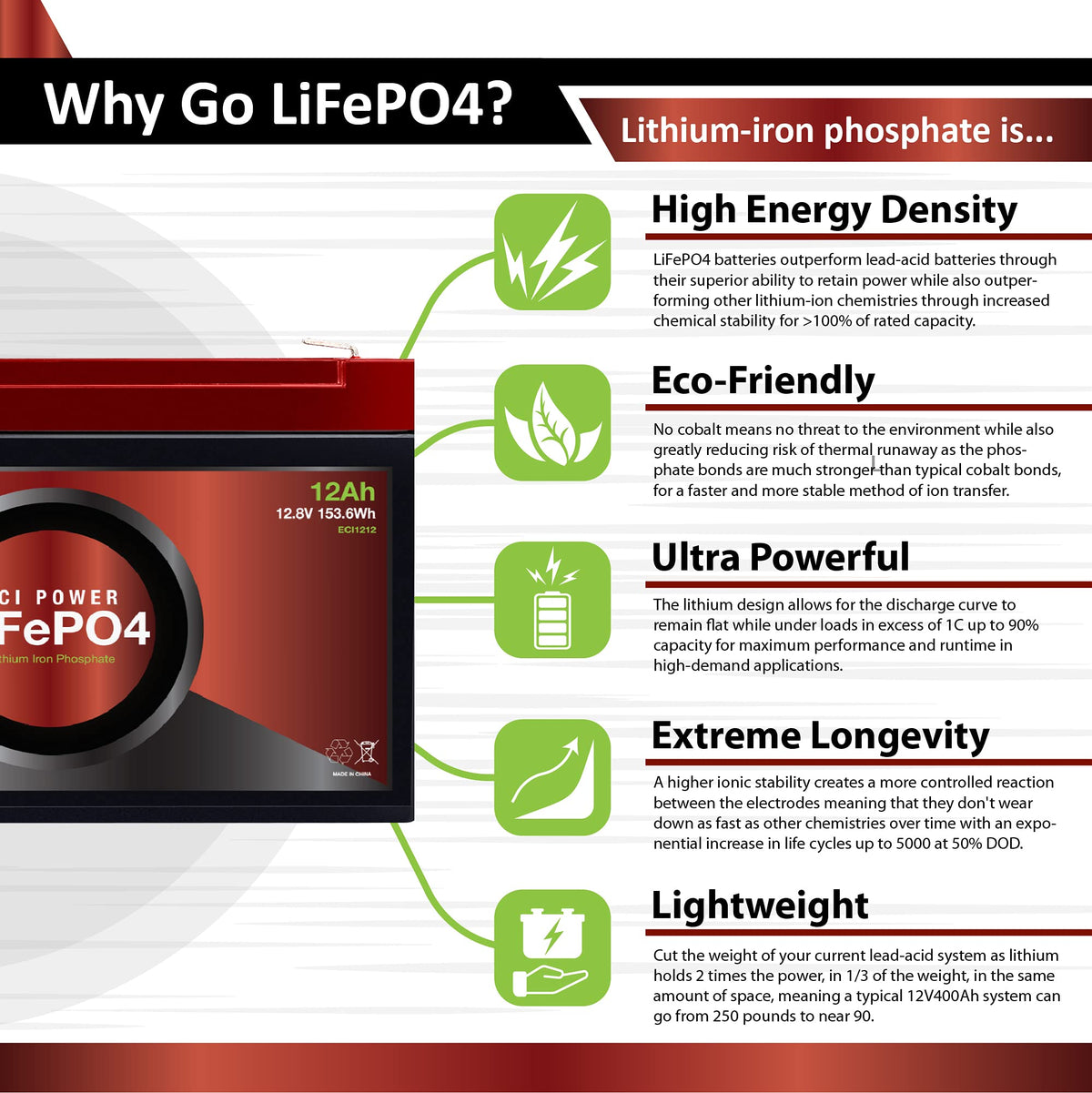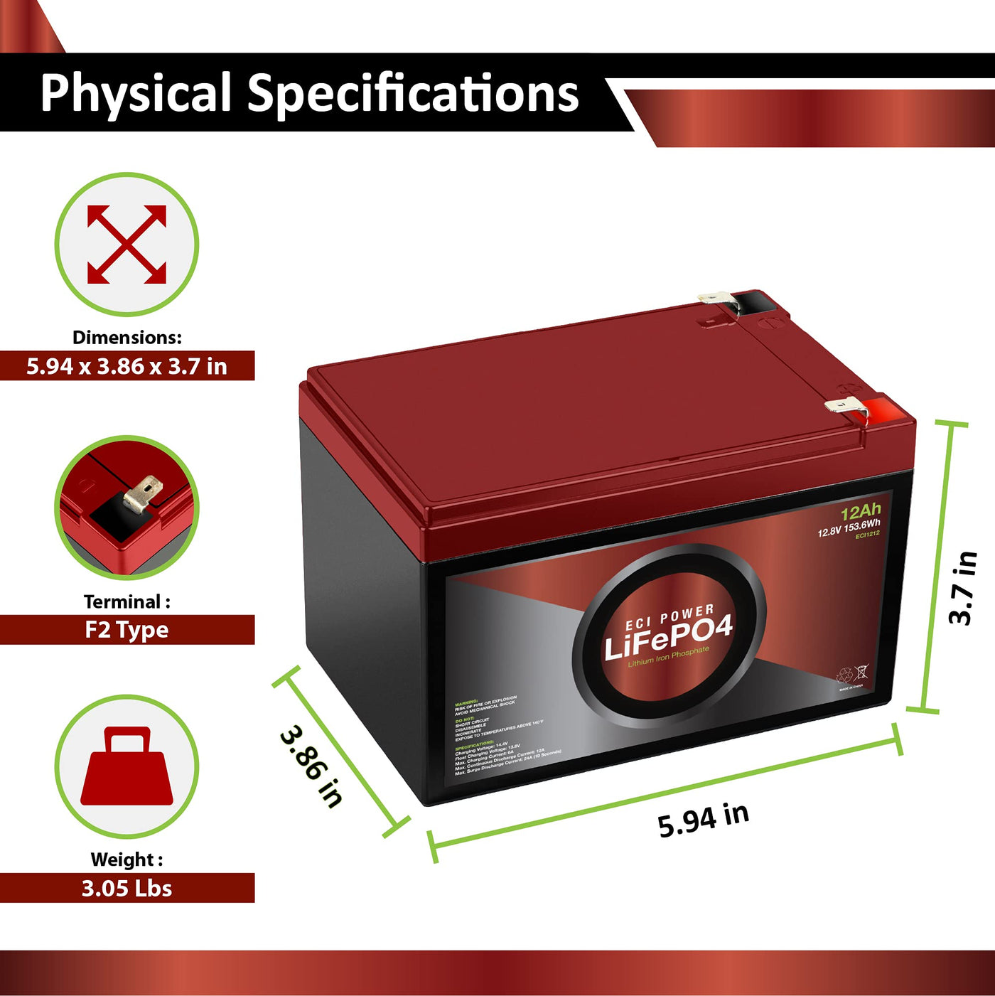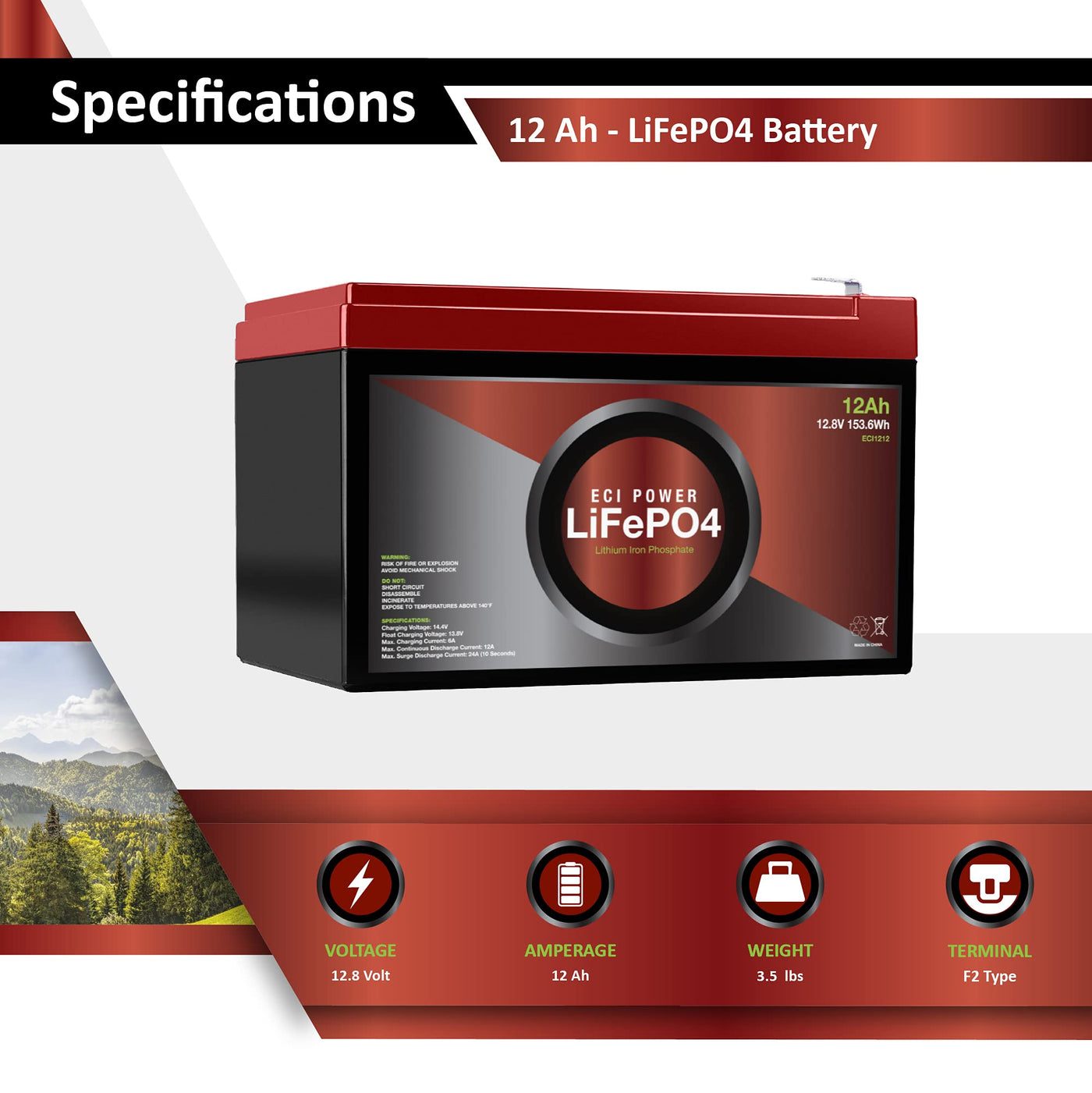 Eci Power 12V 12Ah Lithium Lifepo4 Deep Cycle Rechargeable Battery | 2000-5000 Life Cycles & 10-Year Lifetime | Built-In Bms | Perfect For Rv, Solar, Marine, Overland, Off-Grid Applications