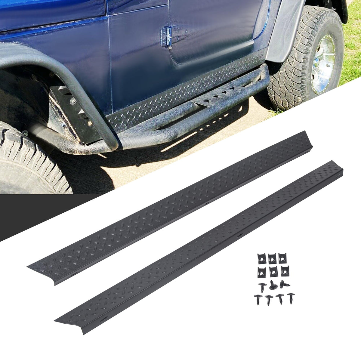 ECOTRIC Side Body Armor Rocker Panel Compatible with 1997-2006 Jeep TJ Wrangler Replacement for 11650.05 Panel Diamond Plate Kit