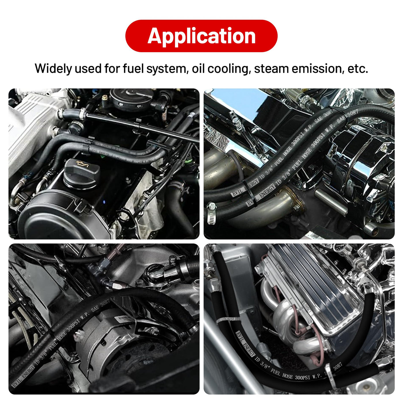 Q: Is the EVIL ENERGY fuel hose suitable for oil cooling applications?A: Yes, the EVIL ENERGY fuel hose meets and exceeds SAE 30R7 standards, making it ideal for oil cooling, steam emission, and various fuel system applications.