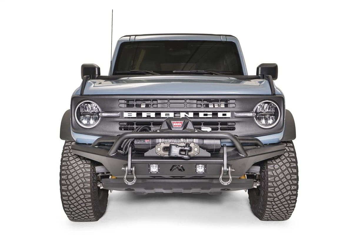 Q: Is the Fab Fours FB21-B5252-1 bumper compatible with all Ford Bronco models?A: The Fab Fours Inc. FB21-B5252-1 Front Replacement Bumper is specifically designed to fit 2021 and newer Ford Bronco models, ensuring a perfect fit and optimal functionality.