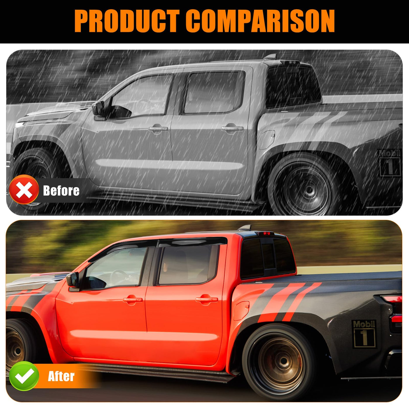 FormiPow Window Visors Rain Guards for 2022-2025 Nissan Frontier Crew Cab, Tape-On Window Deflectors, Weather Protection, Wind N