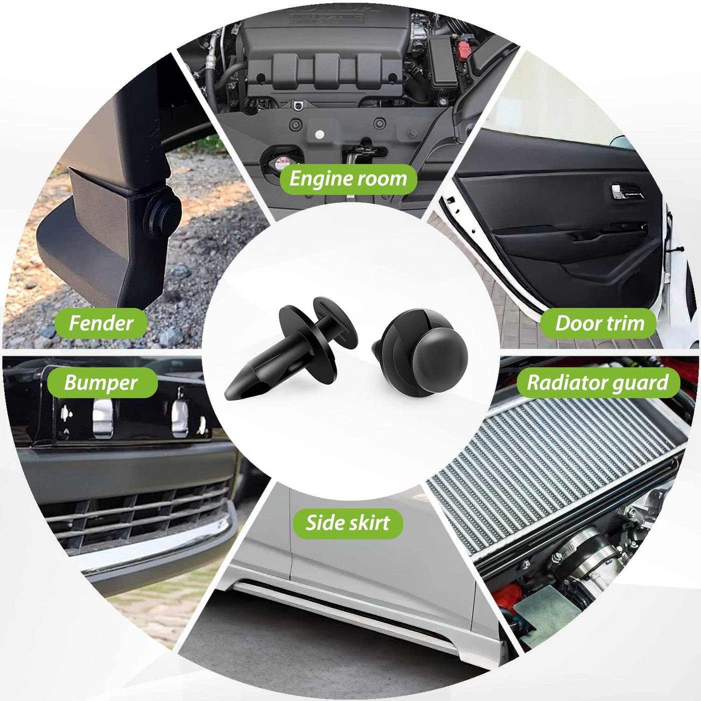 Q: Are these car clips compatible with all vehicle makes and models?A: Yes, the Frokom Car Retainer Clips are designed as a replacement for many popular brands including Toyota, GM, Ford, Jeep, Honda, and Chrysler, making them highly compatible with a wide range of vehicles.