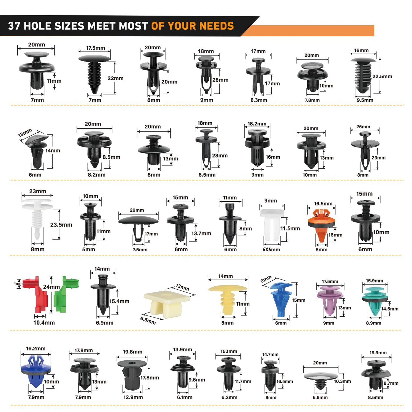 Gooacc 1295Pcs Car Retainer Clips And Auto Fasteners Assortment-37 Most Popular Sizes Nylon Bumper Fender Rivets With 10 Cable T