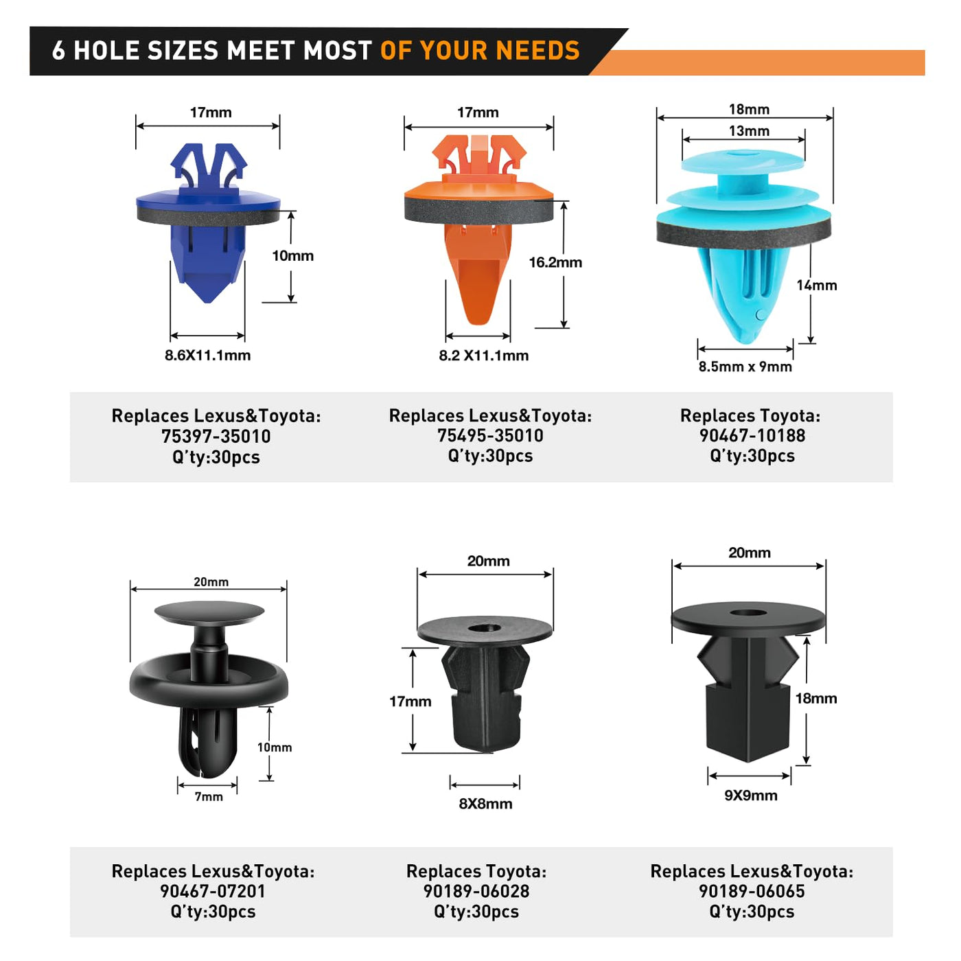 Gooacc 180Pcs Car Bumper Retainer Clips Bumper Fender Liner Kit For Lexus Toyota 4Runner Tacoma Rav4 Scion 75495-35010 75397-350