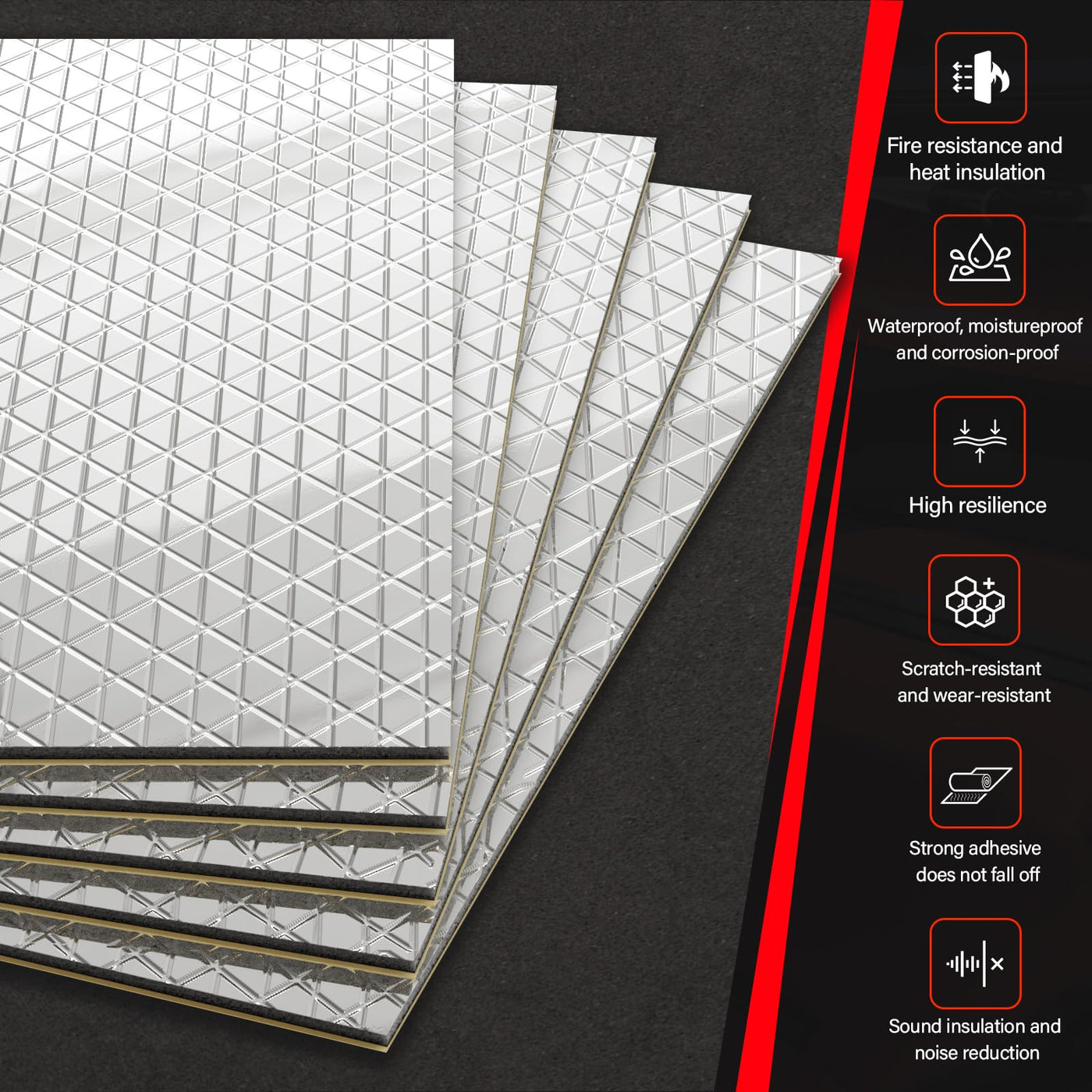 Q: What materials are used in the construction of the GOSCHE sound deadening mat?A: The GOSCHE sound deadening mat is made from a combination of PE and aluminum materials, designed to provide strong sound insulation and absorption performance, making it effective for creating a quieter driving environment.