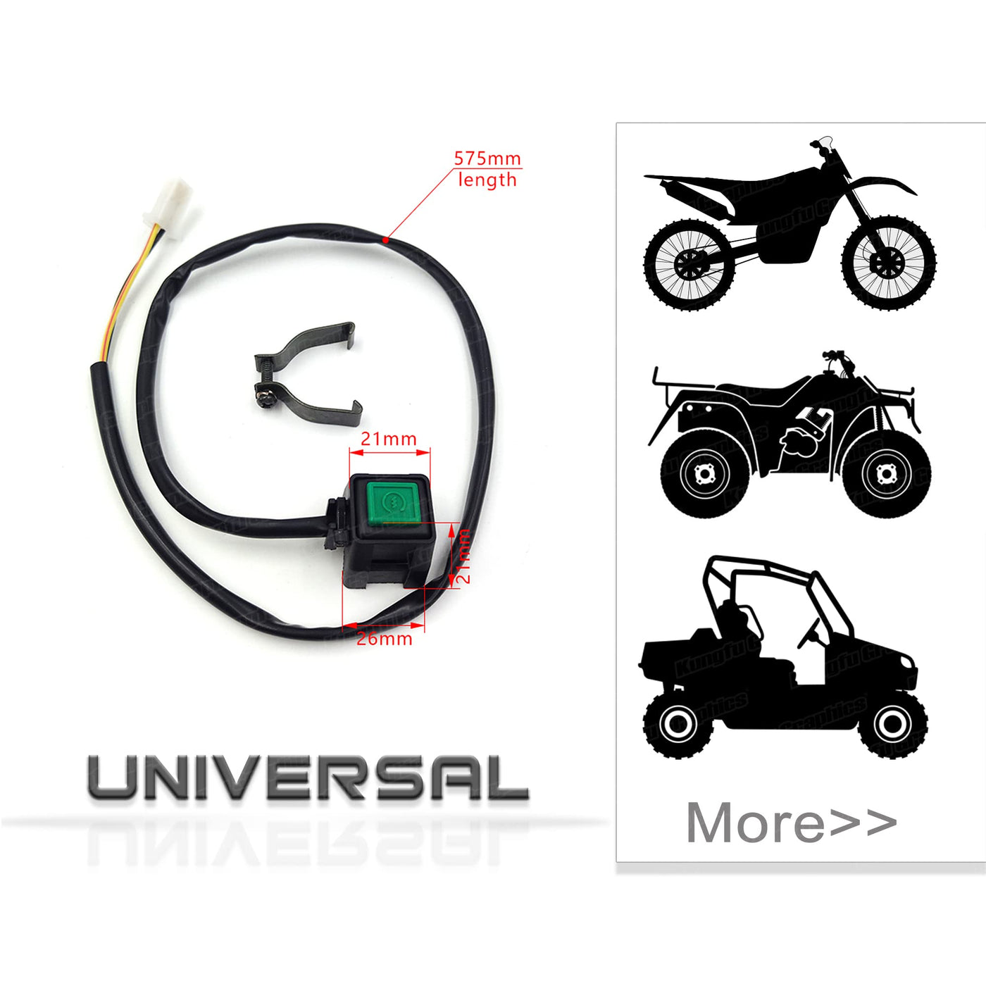 Universal : Oem Replacement | Cable Length: 575Mm. This Switch Is Small In Size, Does Not Take Up Much Room On Your Bars. It Can Be Easily Mounted Over Your Existing Clutch Lever Perch To Save Space. | Made By Durable Abs Plastic And Iron Holder. | Three Color Options Make Your Handlebar Cool And Eye-Attractive. | It Is Engine Off Push Switch , Control Your Bike Well And Freely.