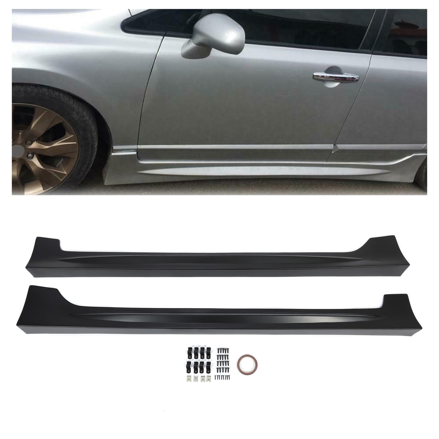 VEHICLE FITMENT - Compatible with 2006-2011 8th Gen Honda Civic 4 Door Sedan Model. Not Fit 2 Door Coupe Model. Please check whether our product is suitable for your vehicle before purchasing. PREMIUM MATERIAL - Made of high quality plastic, light-weight, wear resistance, impact resistance and heat resistance, ensuring its strength and durability to withstand daily wear and scratching. AERODYNAMICS DESIGN - This side skirt effectively redirects airflow around the car, reducing drag and increasing stability at high speeds. The streamlined design helps to enhance fuel efficiency and performance. UPGRADED APPEARANCE - Featuring a sleek and sporty appearance, the side skirts add a touch of style and aggression to the vehicle's profile. Also provide additional protection against road debris, such as rocks, dirt, and grime. EASY INSTALLATION - You will receive 1 pair of side skirts and mounting hardware (as picture shown). The package does not come with instructions.