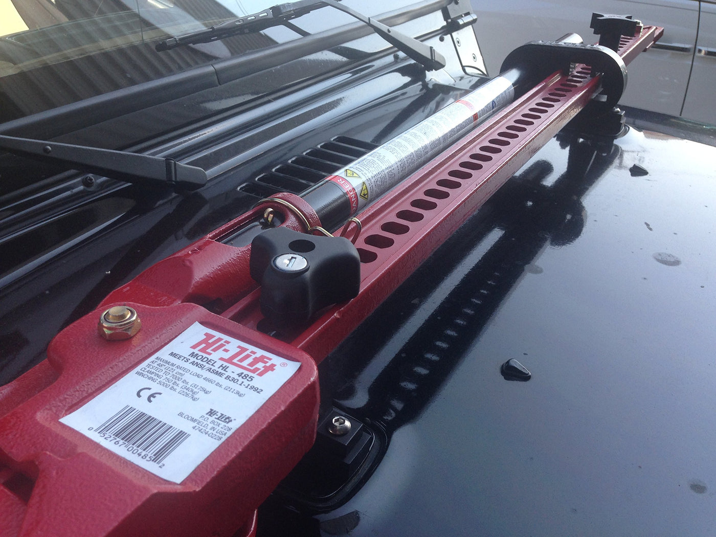 The Hi-Lift Jack Hood Mount Locking Knob is made specifically for use with Hi-Lift Jack Jeep Wrangler Hood Mounts, model numbers HM-800, HM-825 and HM-850. The Locking Knob replaces an existing knob and, once tightened, can be locked using the provided key, keeping your Hi-Lift jack safe and secure.