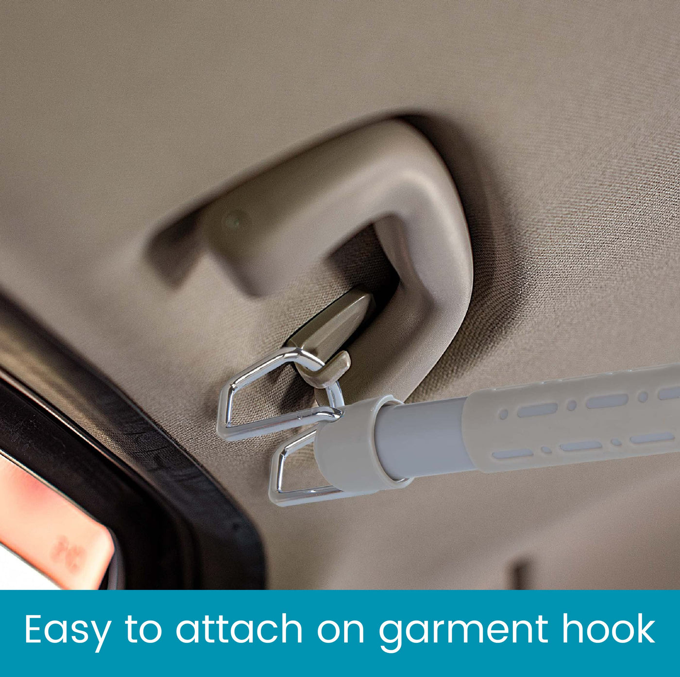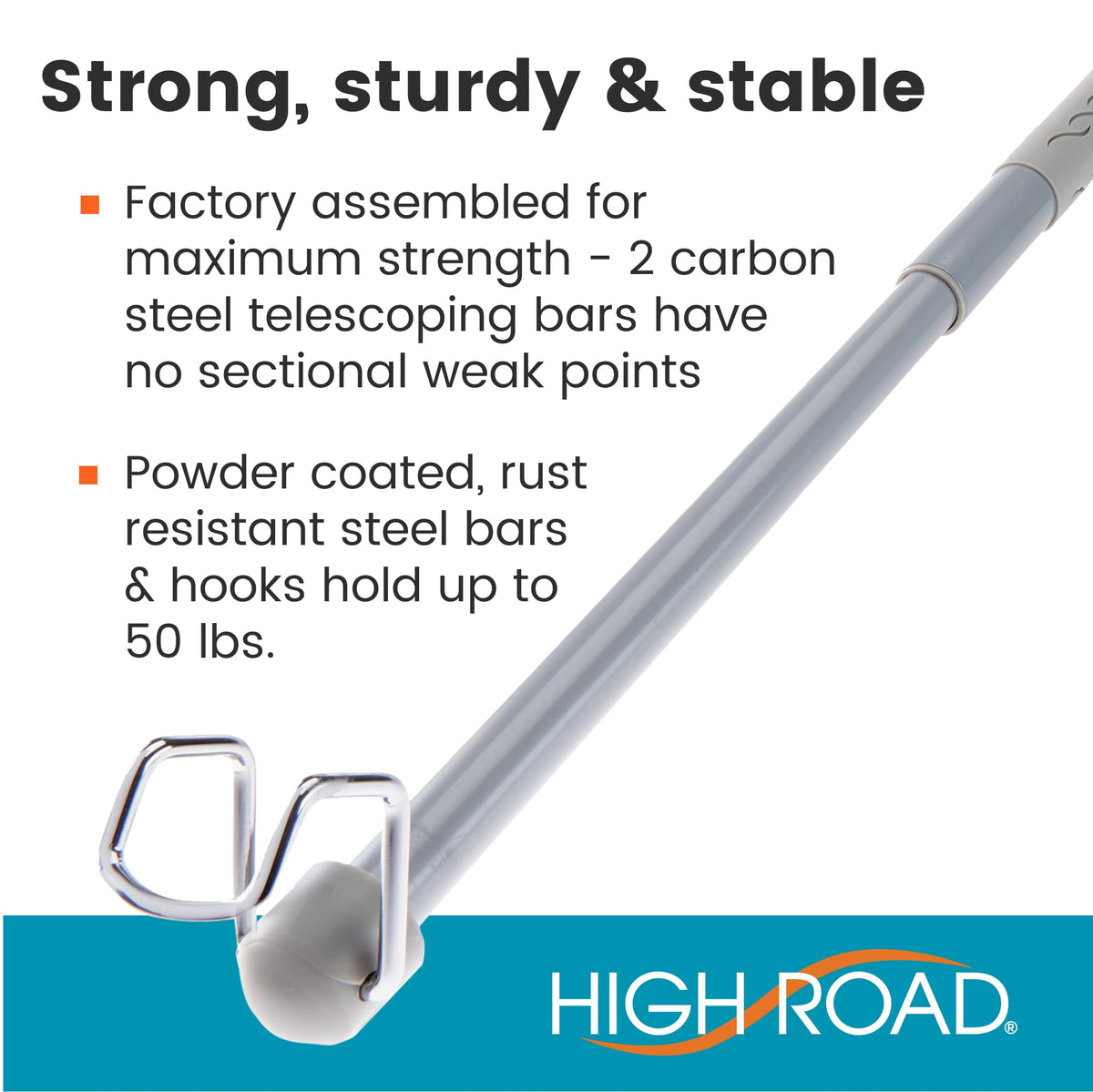 Clothes Rod For Car For Wrinkle-Free Travels - Developed By High Road In 2005, Our Heavy-Duty Car Hanger Bar Is Built With Strong, Sturdy Materials To Hold Up To 50 Lbs. Without Sagging - Perfect For Moving, Camping And Road Trips | No Breakable Plastic Hooks - Our Car Hanging Rod Has Adjustable Telescoping Bars And Large End Hangers Constructed Of Rust-Resistant Steel For A Strong And Secure Hold On Garment Hooks And Grab Handles - Won'T Fall Off On Bumpy Roads | No Slipping, Sliding Or Sagging - Rubberized Grip Sleeves And Dividers On Our Car Clothes Rod Keep Hangers And Garments In Place, Even On Tight Turns And Hard Stops | Easy To Install In Any Vehicle - Arrives Fully Assembled For Fast Two-Way Attachment - End Hangers Turn Down To Hook Over Handles Or Rotate Up To Hang From Garment Hooks - Factory Assembled To Ensure Strength, Installs In Minutes | Quality Construction, Durable Materials - Interior Rod Extends From 35'' To 59'' Long To Fit Most Vehicles. High Road Has Been Designing Innovative Car Storage Solutions At Our Office In Portland Maine Since 1990.