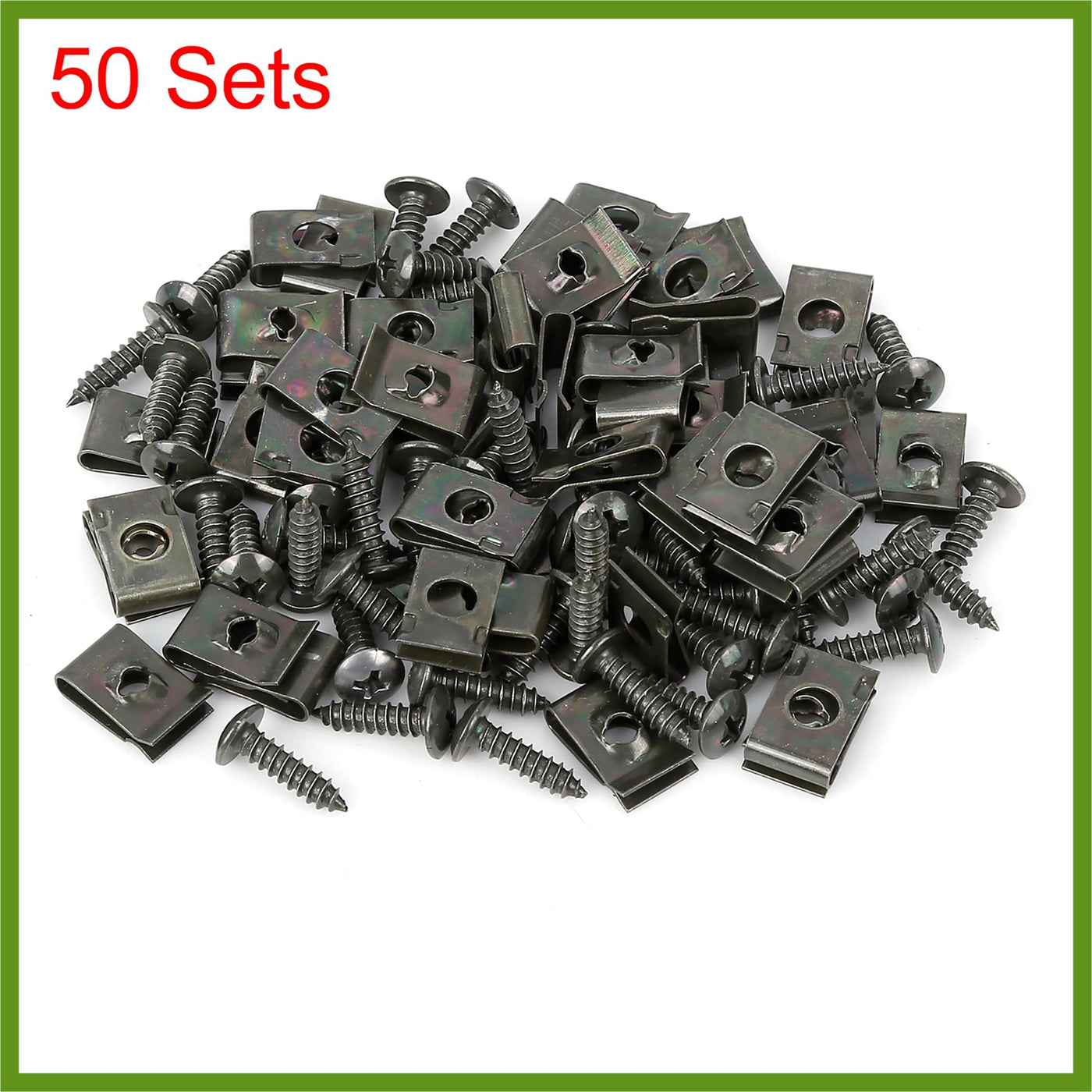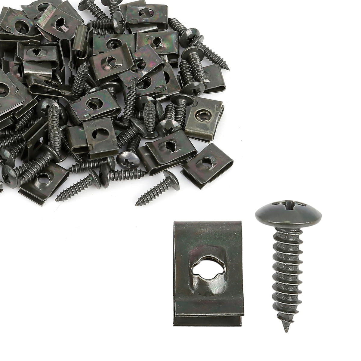 Feature:Use for securing wires and cables.Used for replacing your old or broken motorcycle car screws clips.Working perfectly for vehicle repair and car motorcycle license panel.Strong and durable material made products, rust and corrosion resistant, long time service.Specification:Material:MetalColor:Army GreenScrew Size:4.2x16mm/0.17''x0.63''(Dia*L)Screw Head Size: 9mm/0.35''Package Included:50 x Screw(+/-2%)50 x U Clips(+/-2%)