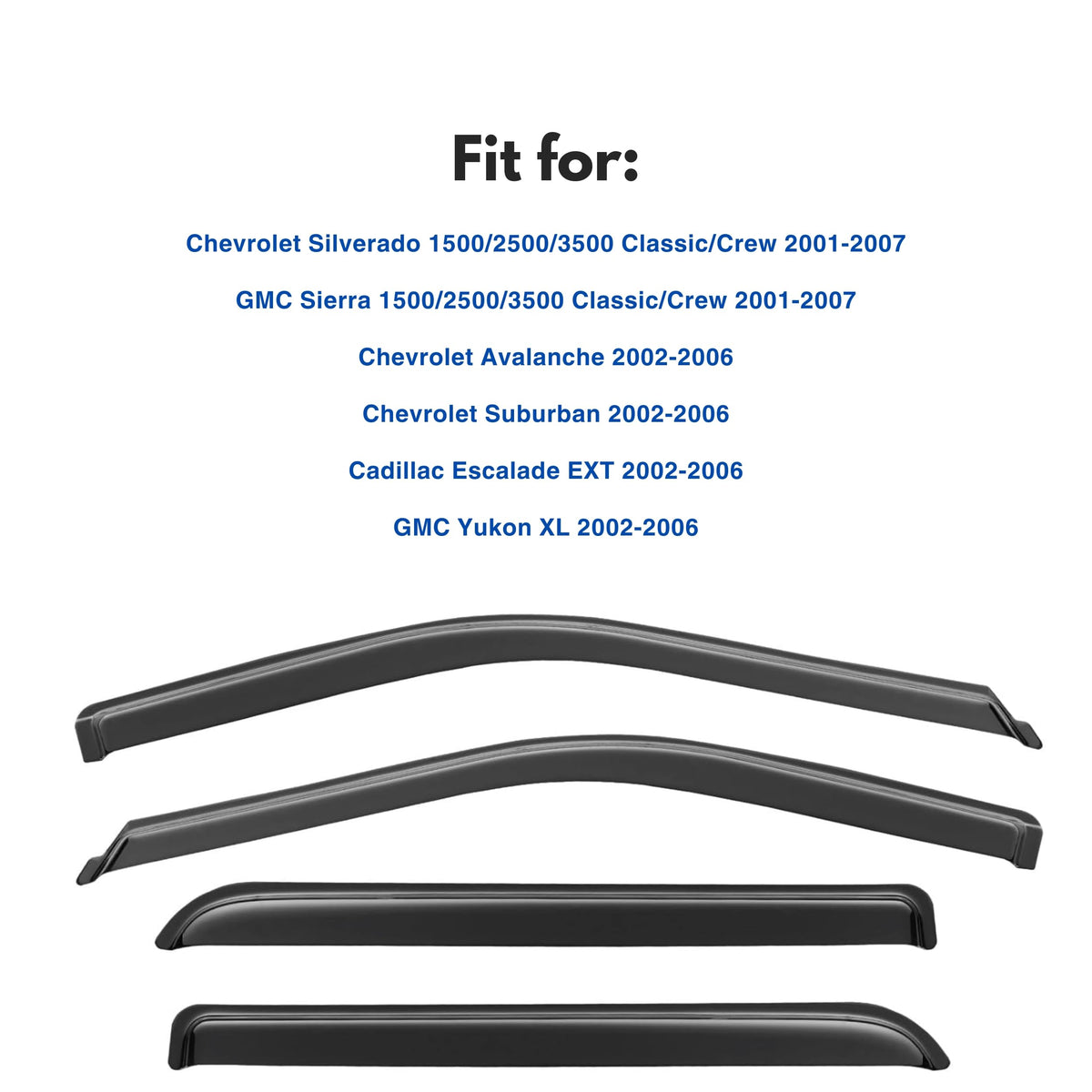 Ig Window Visor Compatible With 2001-2007 Chevy Chevrolet Silverado/Gmc Sierra Crew Cab, 2002-2006 Avalanche/Suburban/Escalade E