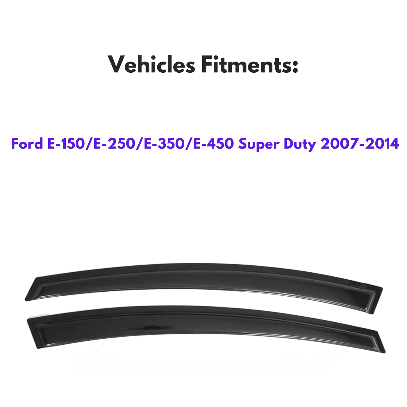 Ig Window Visor Compatible With 2007-2014 Ford E150 E250 E350 E450 Super Duty, Tape-On Extra Durable Rain Guard Side Vent Window