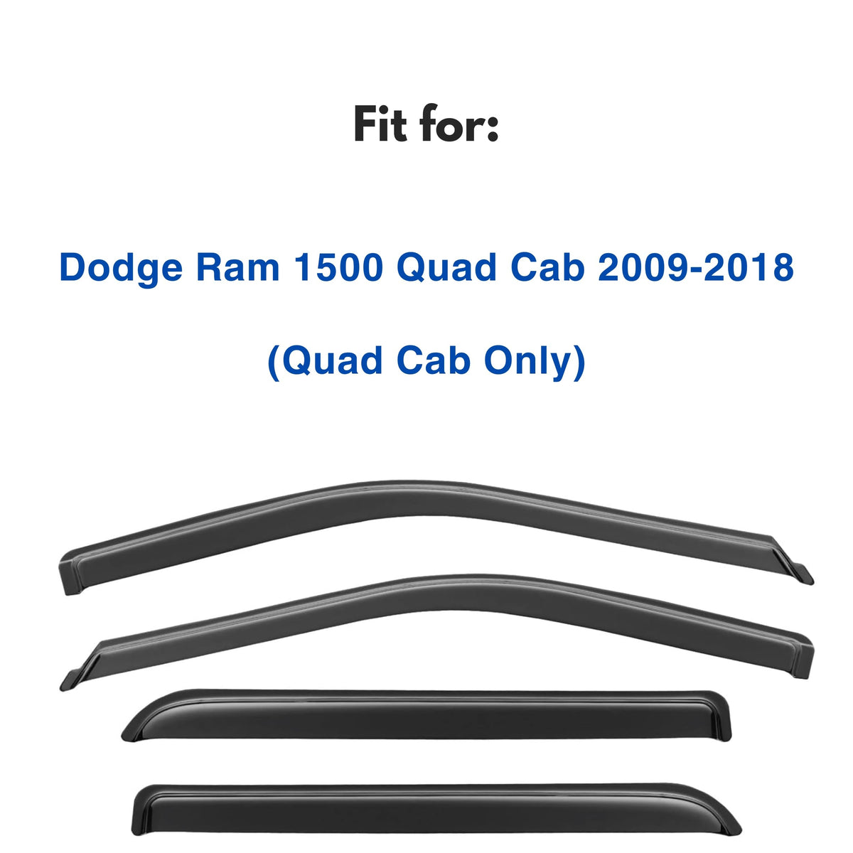 Q: Are the Immortal Window Visors compatible with all Dodge Ram 1500 models?A: The Immortal Window Visors are specifically designed to fit the 2009-2018 Dodge Ram 1500 Quad Cab models. They are not compatible with other cab styles or models.