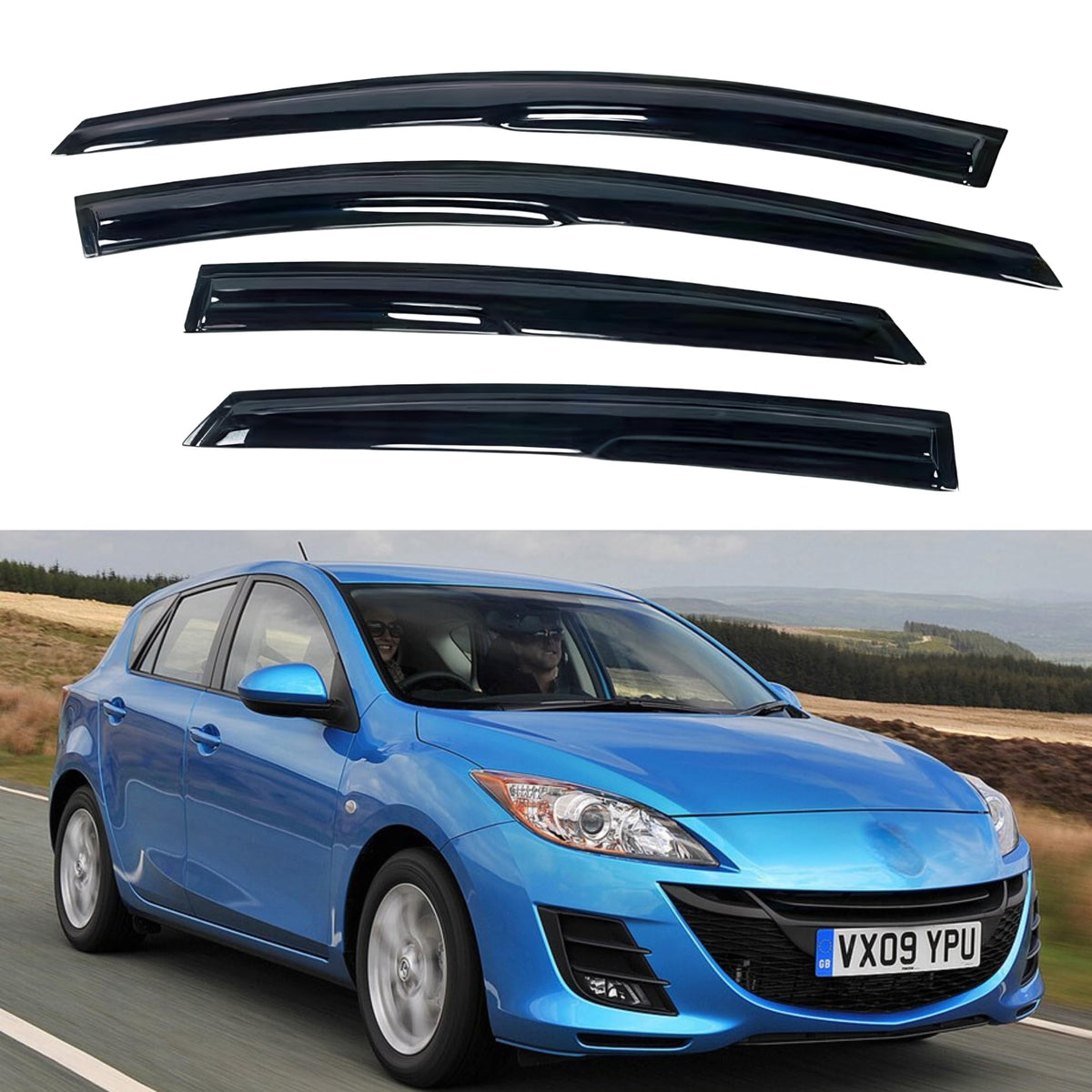Ig Window Visor For Mazda 3 Hatchback 2004-2009, Rain Guard Tape-On Extra Durable Sun Wind Side Vent Window Deflector Mugen Styl